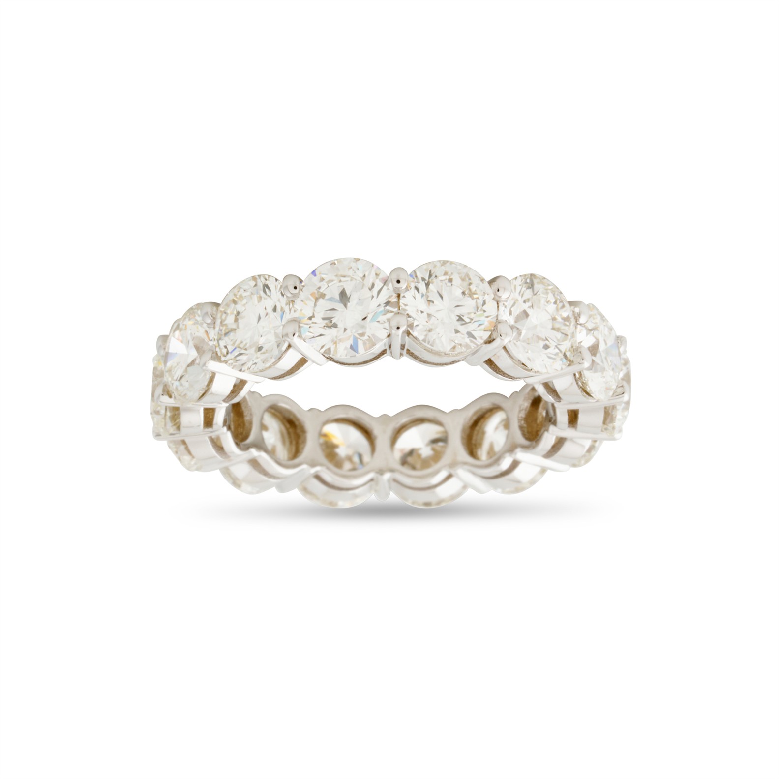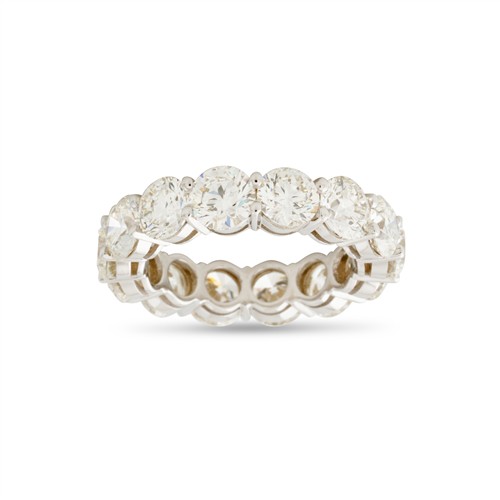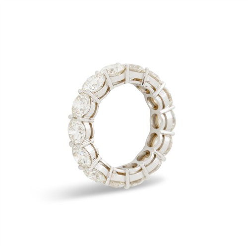 Designed as a continuous row of 14 claw-set round brilliant-cut diamonds together weighing 7.40 carats, mounted in 18ct white gold, size M1/2, gross weight approximately 5.8 grams.