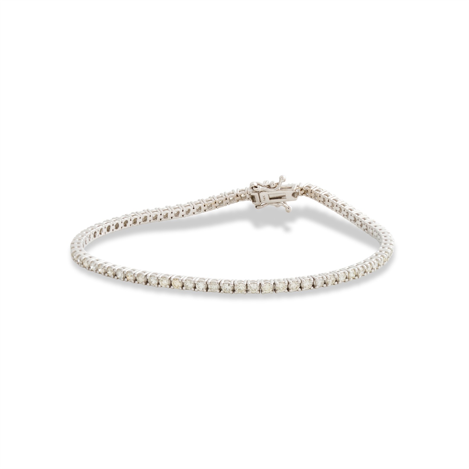 Composed as a line of 72 claw-set brilliant-cut diamonds completed by a concealed box clasp, the diamonds together weighing approximately 1.80 carats, mounted in 18ct white gold, length 180mm, gross weight approximately 7.1 grams.