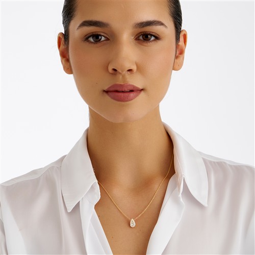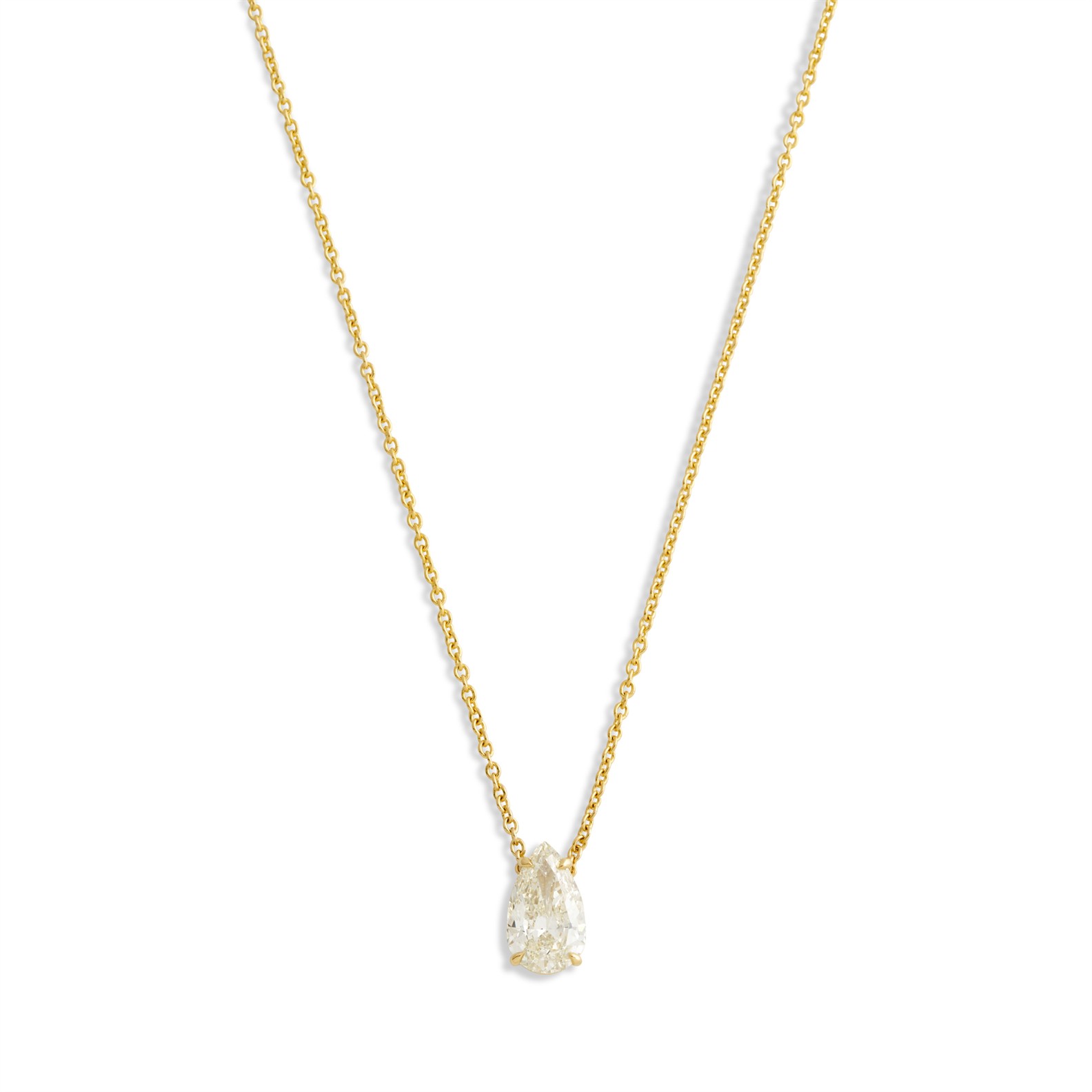 The pear brilliant-cut diamond weighing 1.70 carats, is claw-set, suspended by a trace link chain, mounted in 18ct gold, inner circumference 440mm (adjustable), gross weight approximately 3.6 grams.