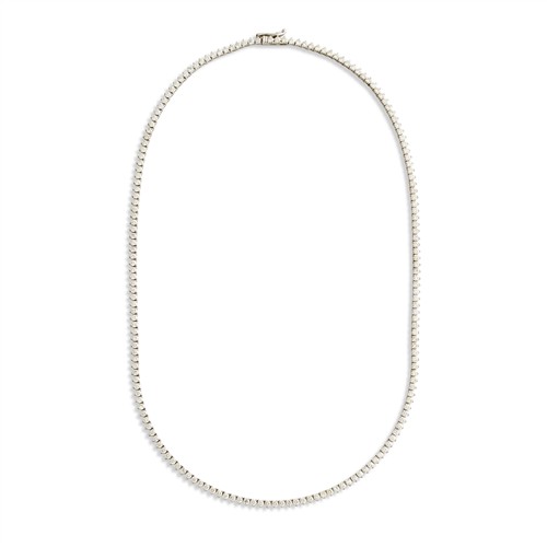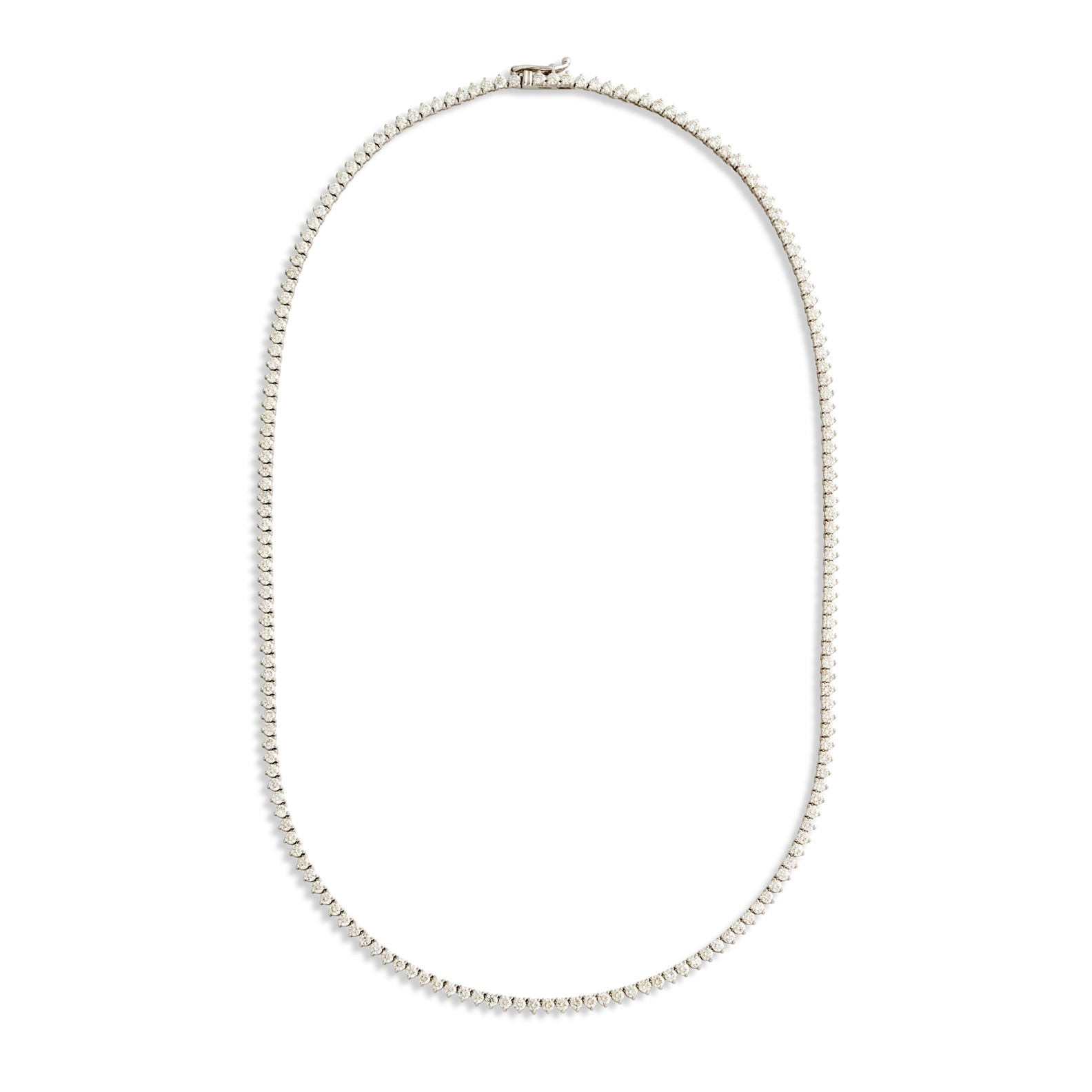 Designed as a line of claw-set brilliant-cut diamonds completed by a concealed box clasp, the diamonds together weighing approximately 6.01 carats, mounted in 14ct white gold, inner circumference 410mm, gross weight approximately 12.2 grams.