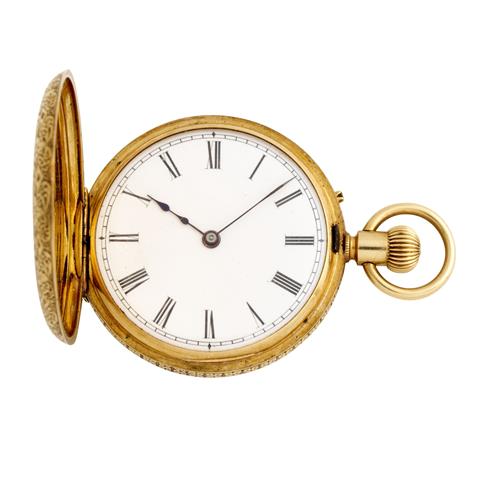 J W BENSON AN 18CT GOLD HALF-HUNTINGCASED POCKETWATCH CIRCA 1880