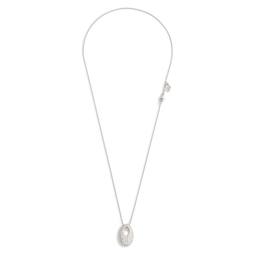 Designed as an openwork drop, pavé-set with brilliant-cut diamonds, the diamonds together weighing approximately 1.20 carats, suspended from a fine foxtail chain, mounted in 18ct white gold, inner circumference 500mm, pendant length 20mm, gross weight approximately 7.9 grams, signed HOF for Hearts on Fire.