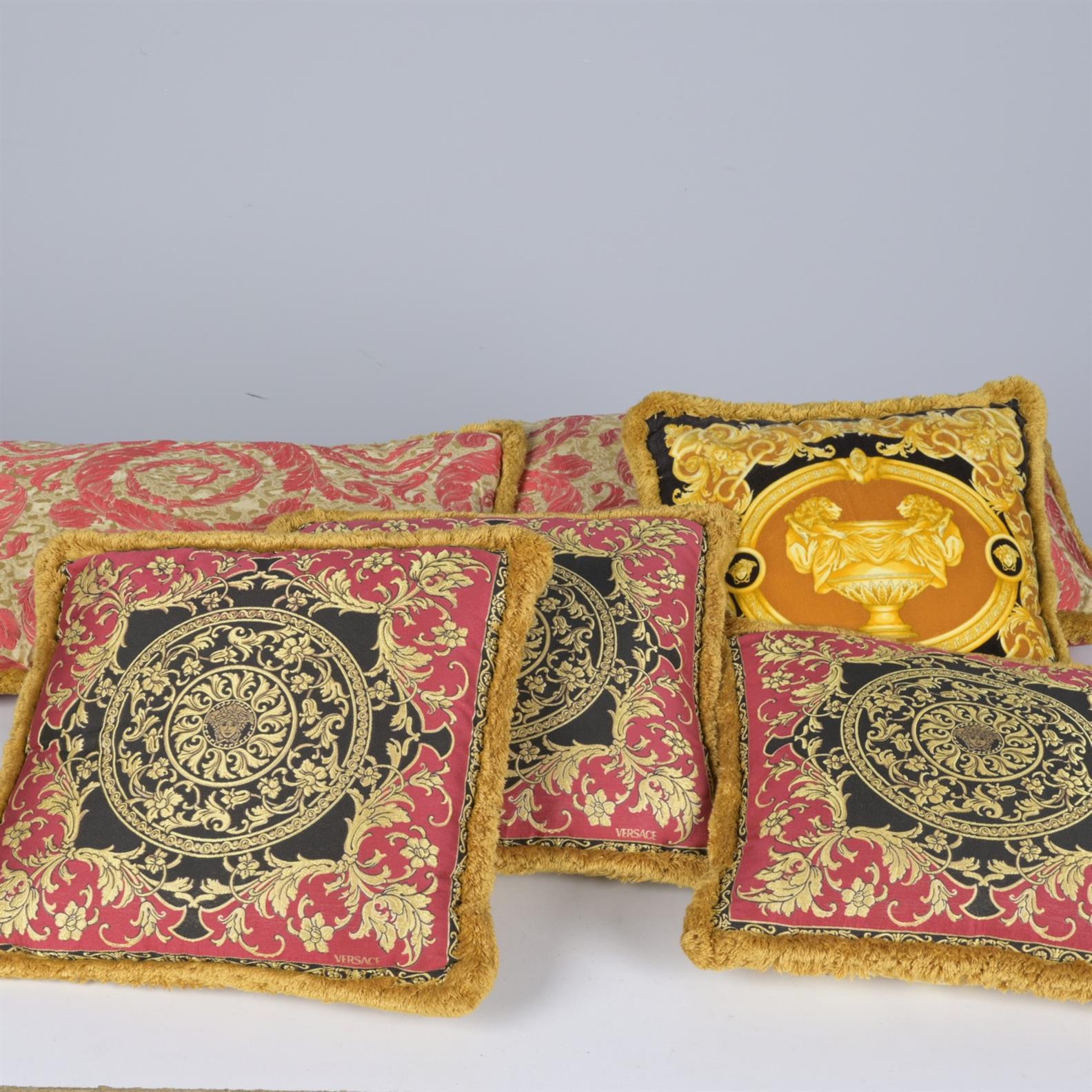 A GROUP OF SIX VERSACE CUSHIONS AND PILLOWSHAMS