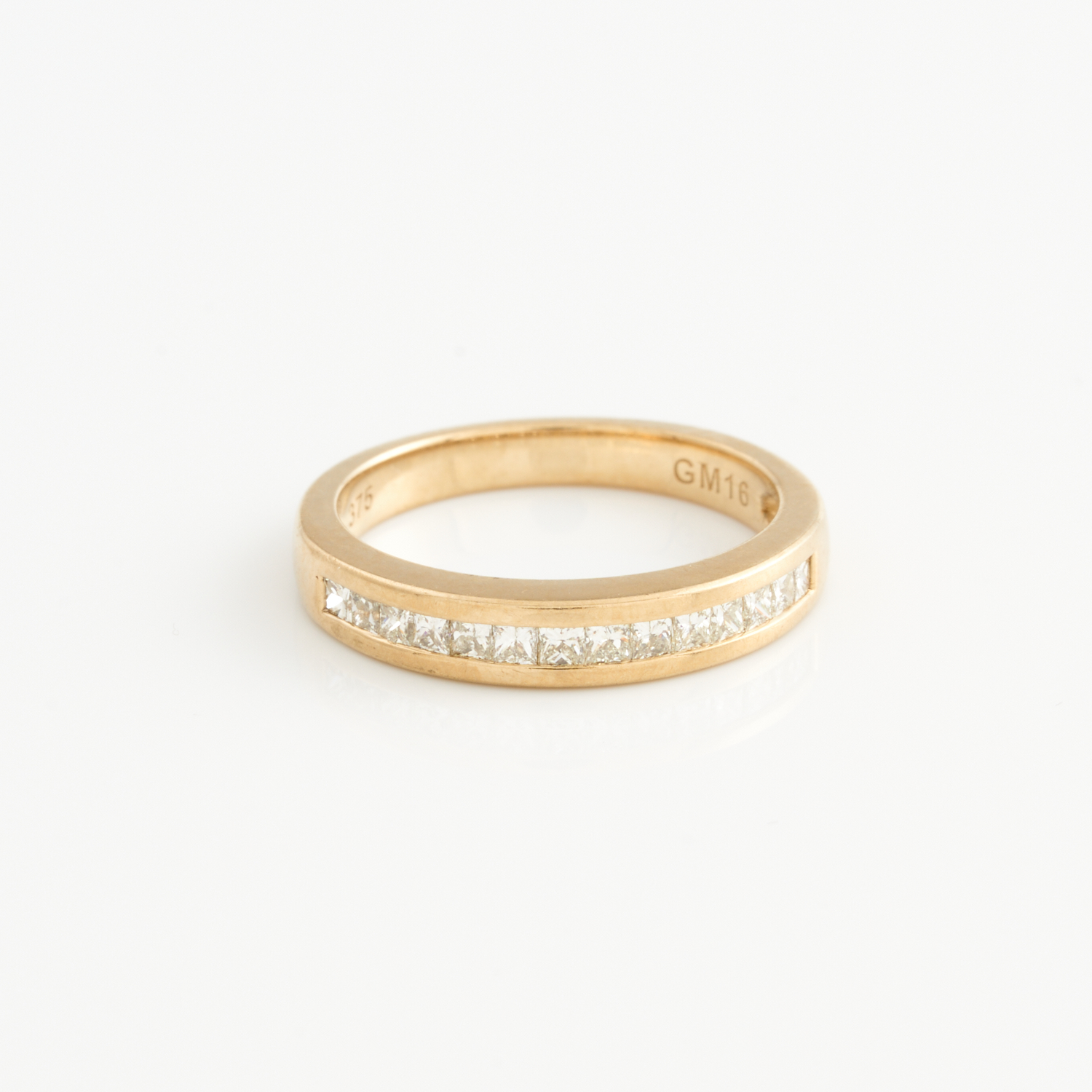 A CHANNEL SET DIAMOND RING IN 9CT GOLD, SIZE I, 2.2GMS