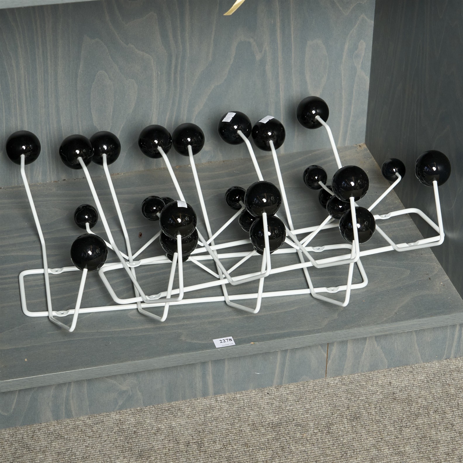 TWO SETS OF BLACK AND WHITE MID-CENTURY ATOMIC STYLE COAT HOOKS W.46CM