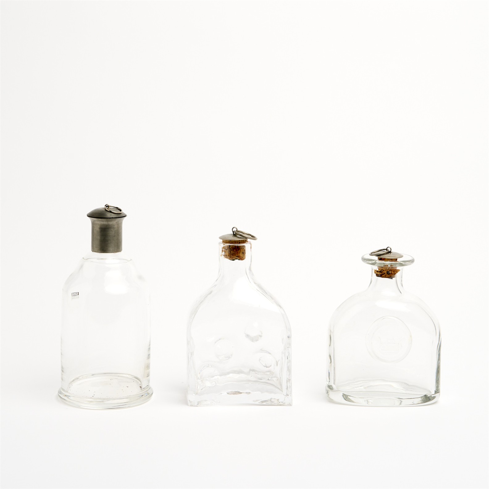 THREE SWEDISH SCHNAPPS DECANTERS H.20CM