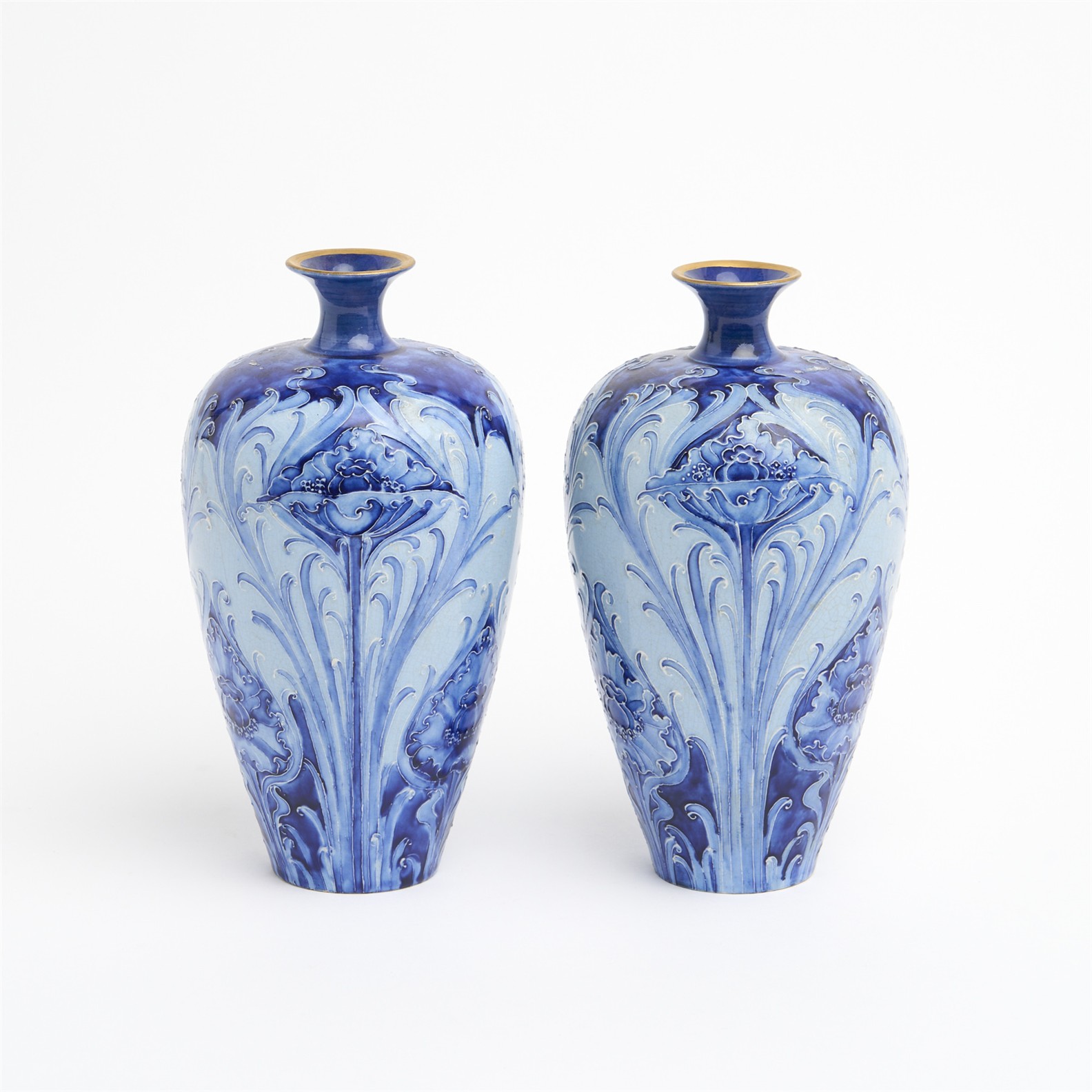 A PAIR OF MOORCROFT FLORIAN WARE MACINTYRE & CO VASES H.22CM