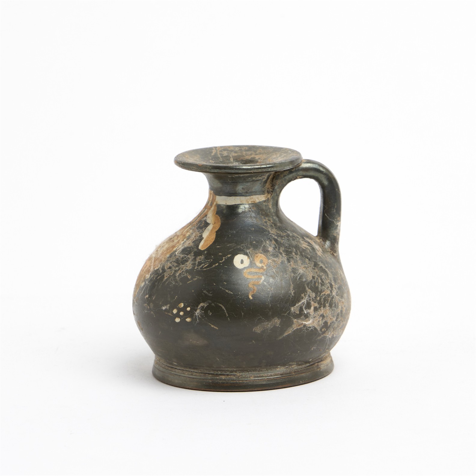 A SOUTH ITALIAN GNATHIAN WARE SQUAT LEKYTHOS MASK MOTIF H.8CM