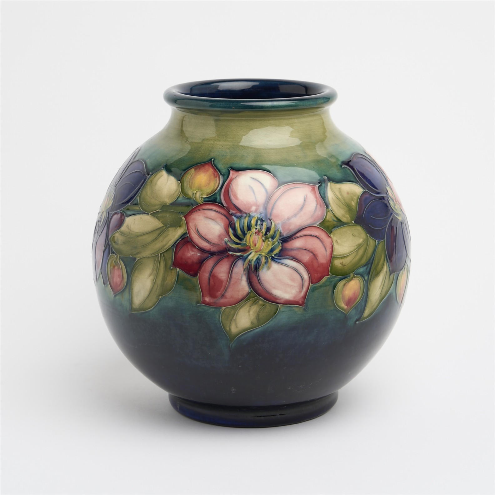 A WALTER MOORCROFT 'CLEMATIS' VASE, INITIALLED & IMPRESSED MARK TO BASE H.28CM