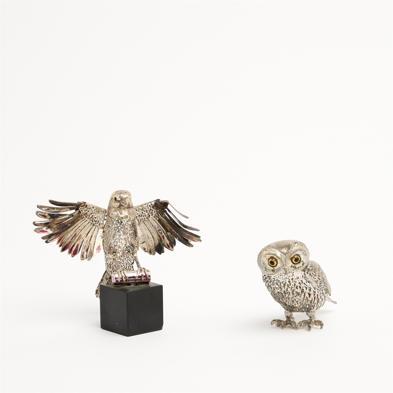 TWO CHRISTOFLE SILVERPLATE FIGURES INCLUDING AN OWL AND ONE OTHER BIRD H.8.5CM (TALLEST)