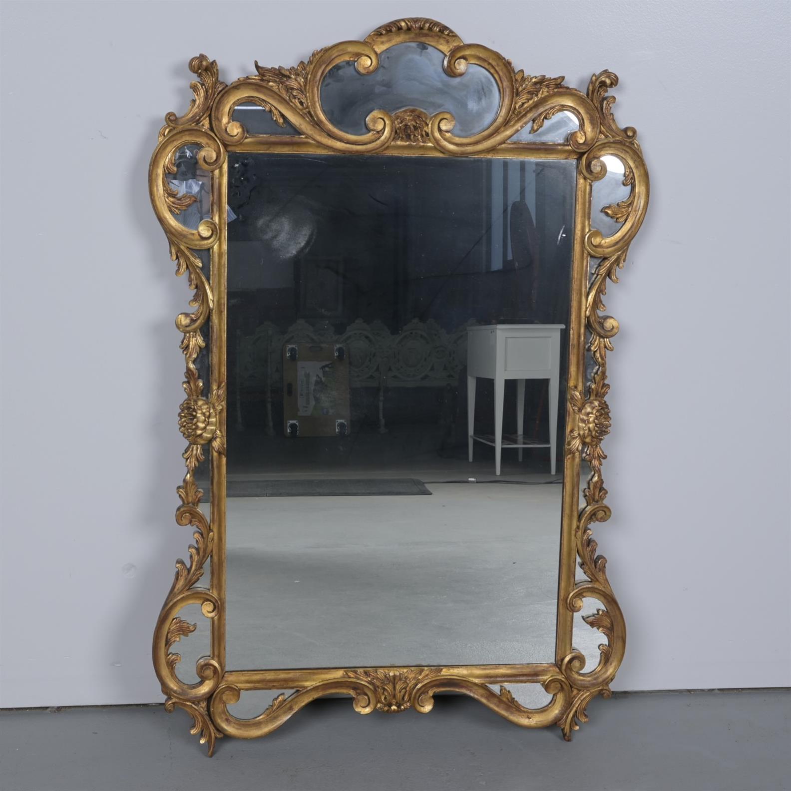 A CARVED AND GILT-FRAMED MIRROR IN MID-18th CENTURY STYLE (126CM H X 85CM )