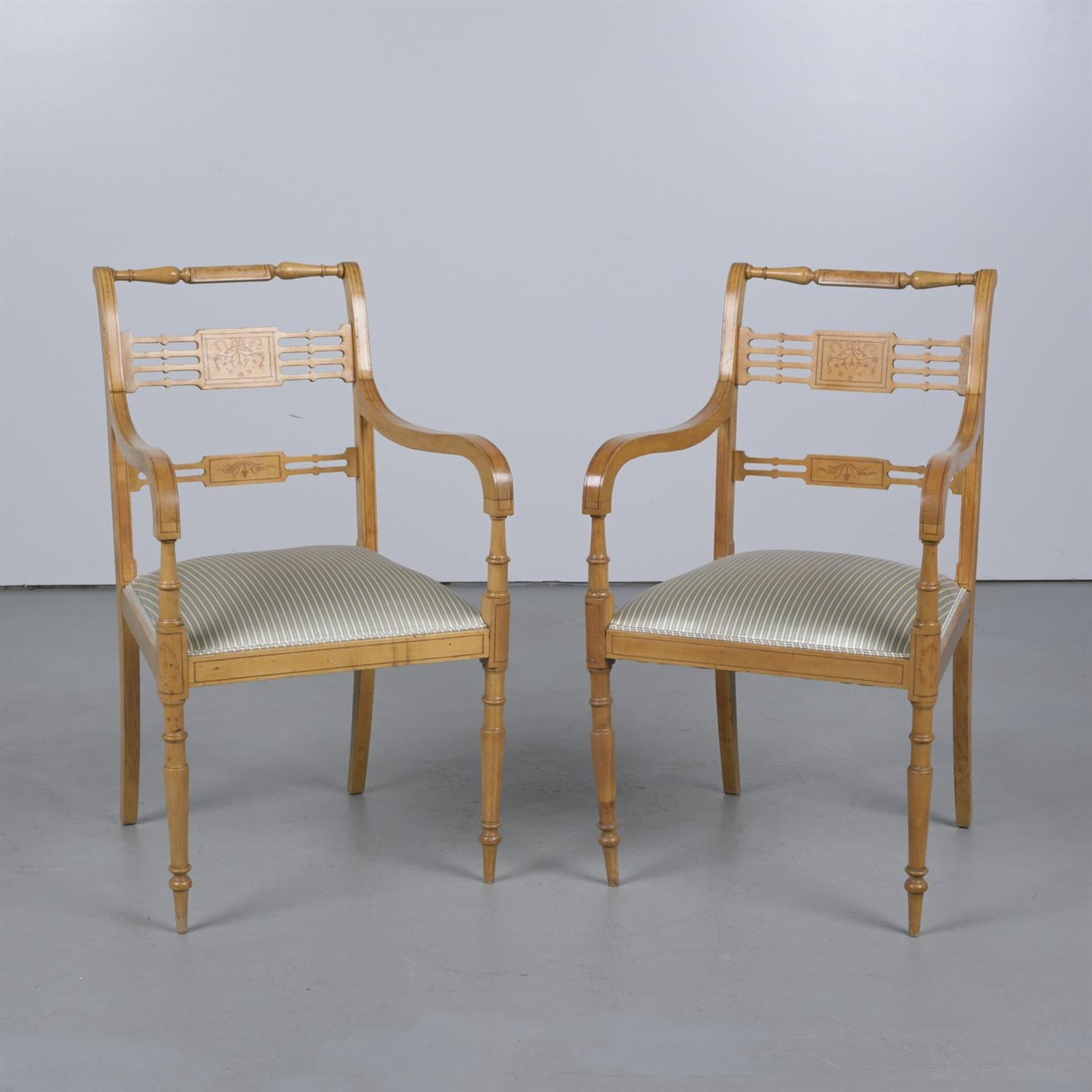 A PAIR OF REGENCY-STYLE ELBOW CHAIRS (A/F) (90CM H X 51CM W X 58CM D)