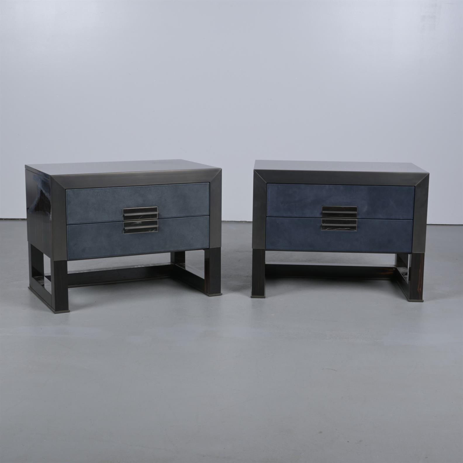 A PAIR OF LONGHI MILANO ITALIA BEDSIDE TABLES (61CM H X 81CM W X 51M D)