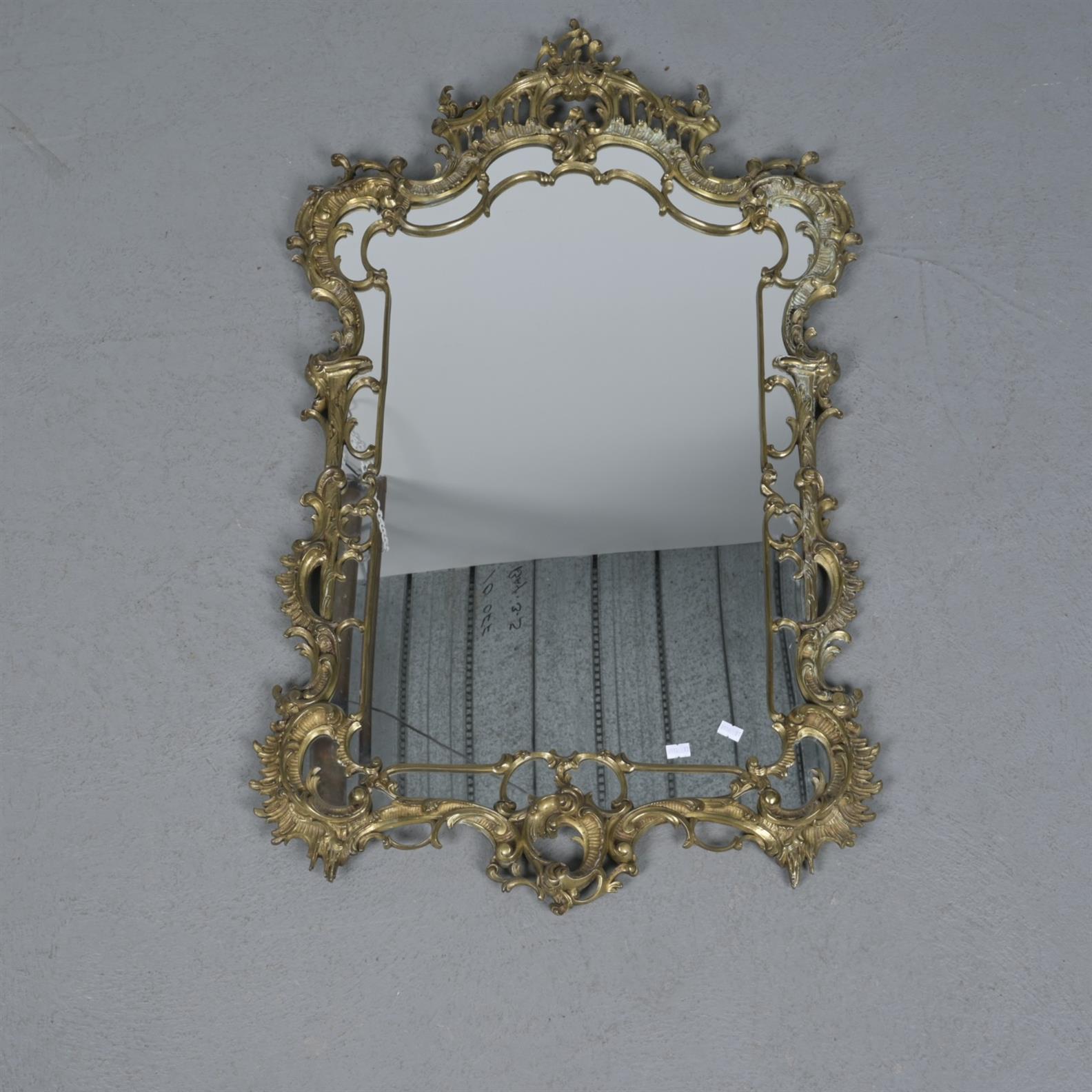 A BRASS-FRAMED WALL MIRROR IN ANTIQUE MANNER (104CM H X 62CM W)