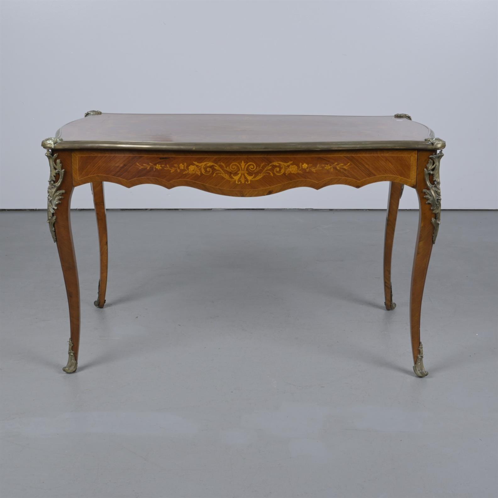 A LOUIS XV-STYLE GILT METAL-MOUNTED ROSEWOOD AND MARQUETRY WRITING TABLE (76CM H X 126CM W X 76CM D)