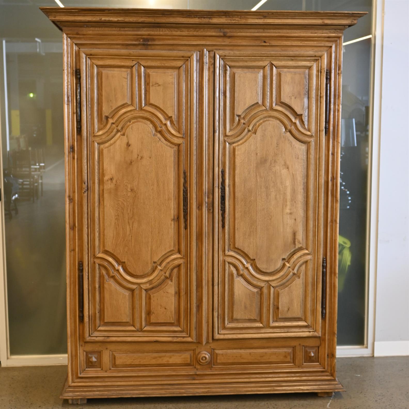 AN EARLY 19tH CENTURY FRENCH OAK ARMOIRE (214CM H X 171CM W X 73CM D)