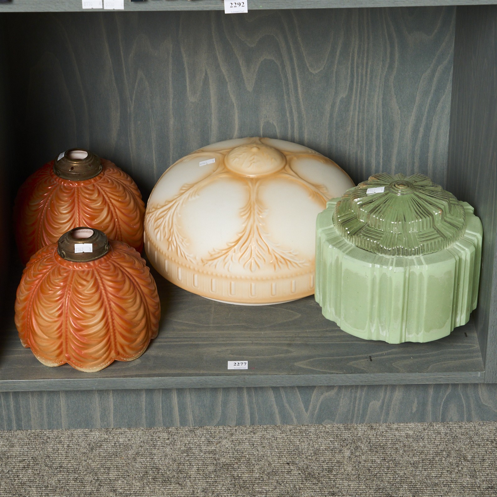 A COLLECTION OF FOUR ART DECO AND LATER GLASS LIGHT SHADES DIA.29CM (LARGEST)