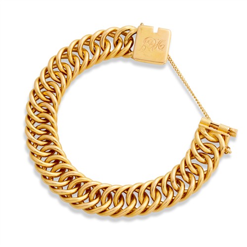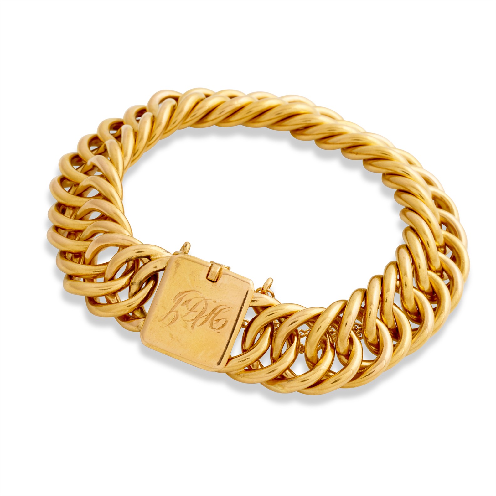 Designed as a curblink bracelet, completed by an engraved clasp, length 170mm, gross weight approximately 132.2 grams.