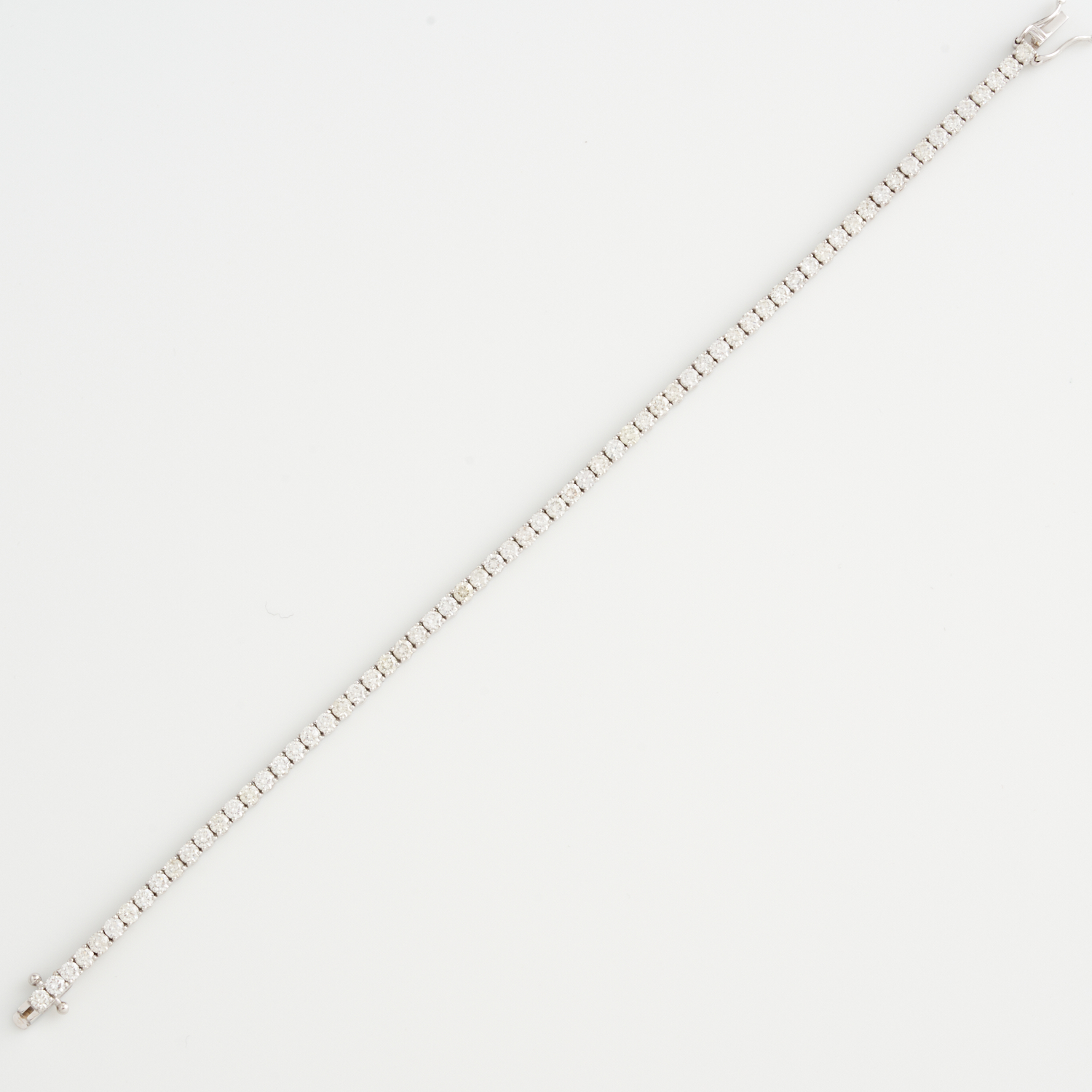A DIAMOND LINE BRACELET IN 18CT WHITE GOLD, THE DIAMONDS TOGETHER WEIGHING 5.40CT, RANGING G-H IN COLOUR AND VS-SI IN CLARITY, 18MM, TOTAL WEIGHT 7.3 GMS, ACCOMPANIED BY A VALUATION