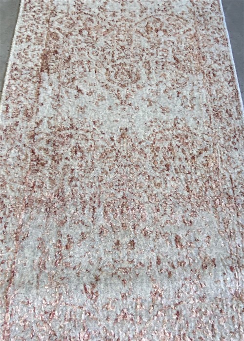 DENSE & EMBOSSED WOOL PILE. TRANSITIONAL DESIGN OF ALL-OVER DISTRESSED & EMBOSSED FLORAL PATTERNS IN SHADES OF BEIGE & COPPER.