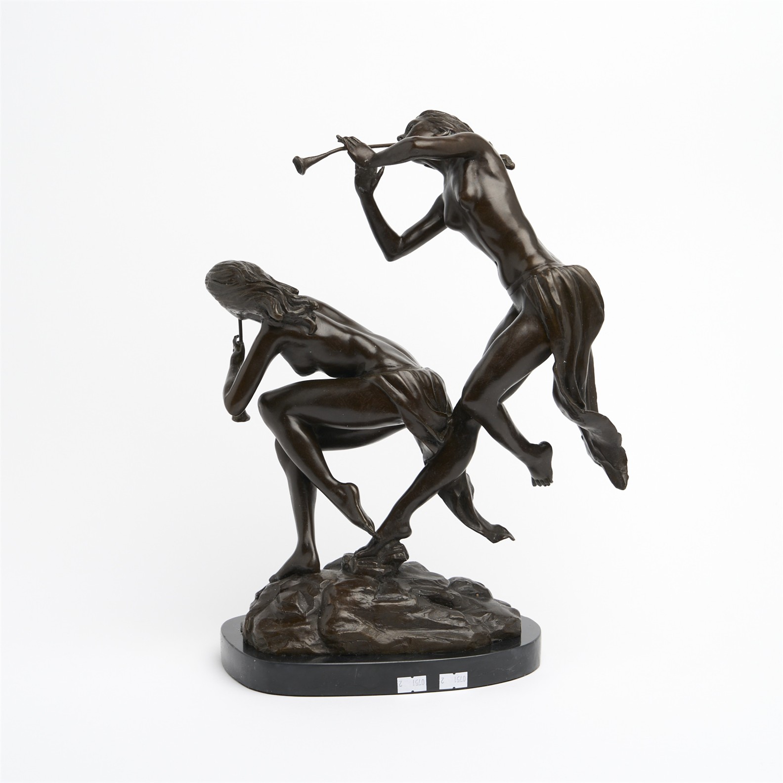 A BRONZE OF TWO DANCING NYMPHS, MOUNTED ON A MARBLE BASE H.42.5CM
