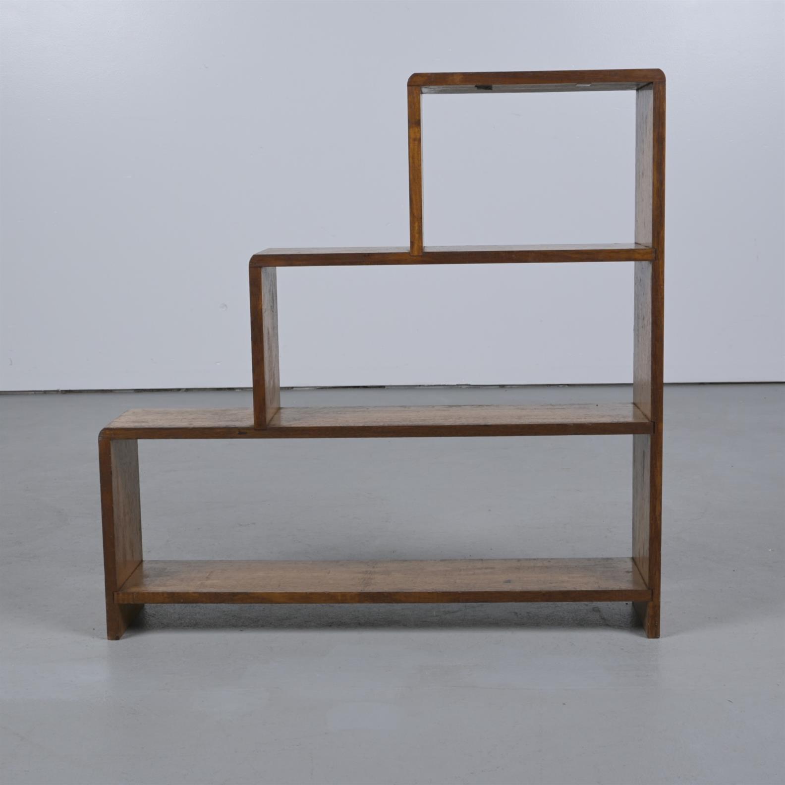 A 1940S AUSTRALIAN HARDWOOD STEPPED LOW OPEN BOOKCASE (84CM H X 84CM W X 19CM D)