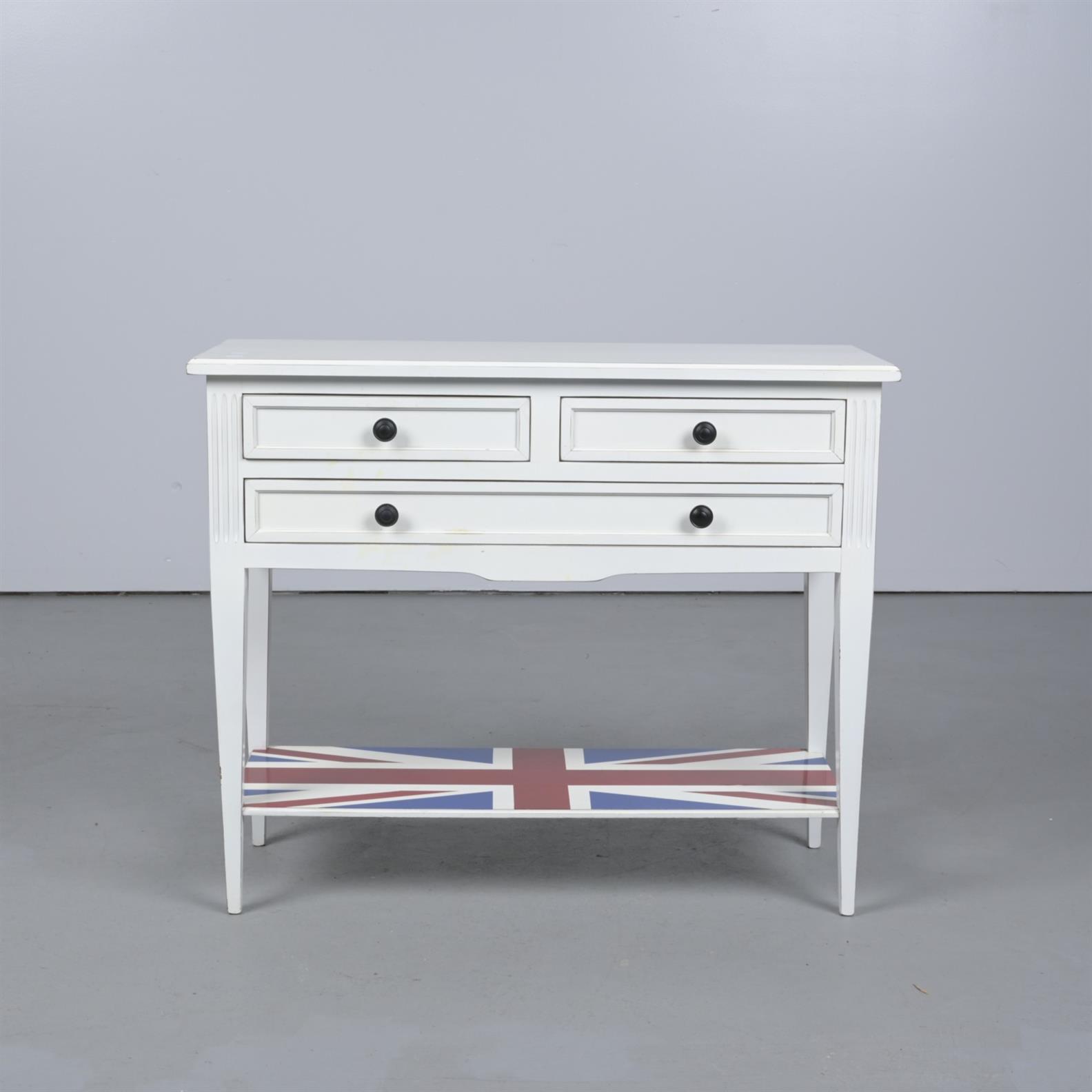 A MODERN PAINTED SIDE TABLE (80CM H X 96CM W X 37CM D)