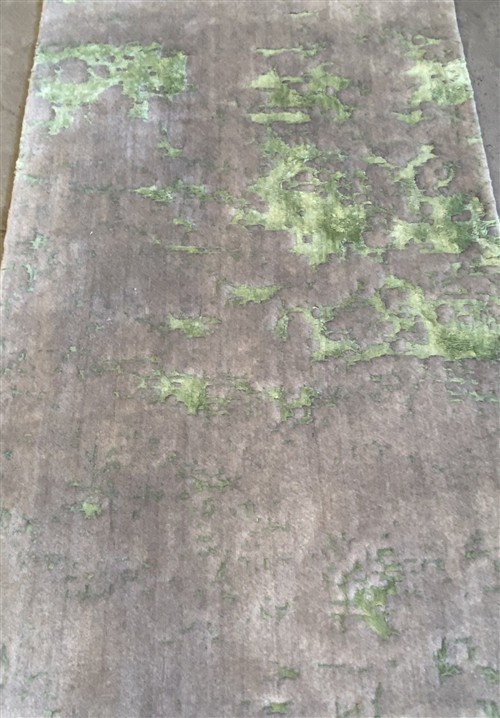 WOOL & SILK-TEXTURED FIBRE WITH MODERN ABSTRACT PATTERNS IN THE SHADE OF PASTEL GREEN WITHIN A SILVER BACKGROUND.