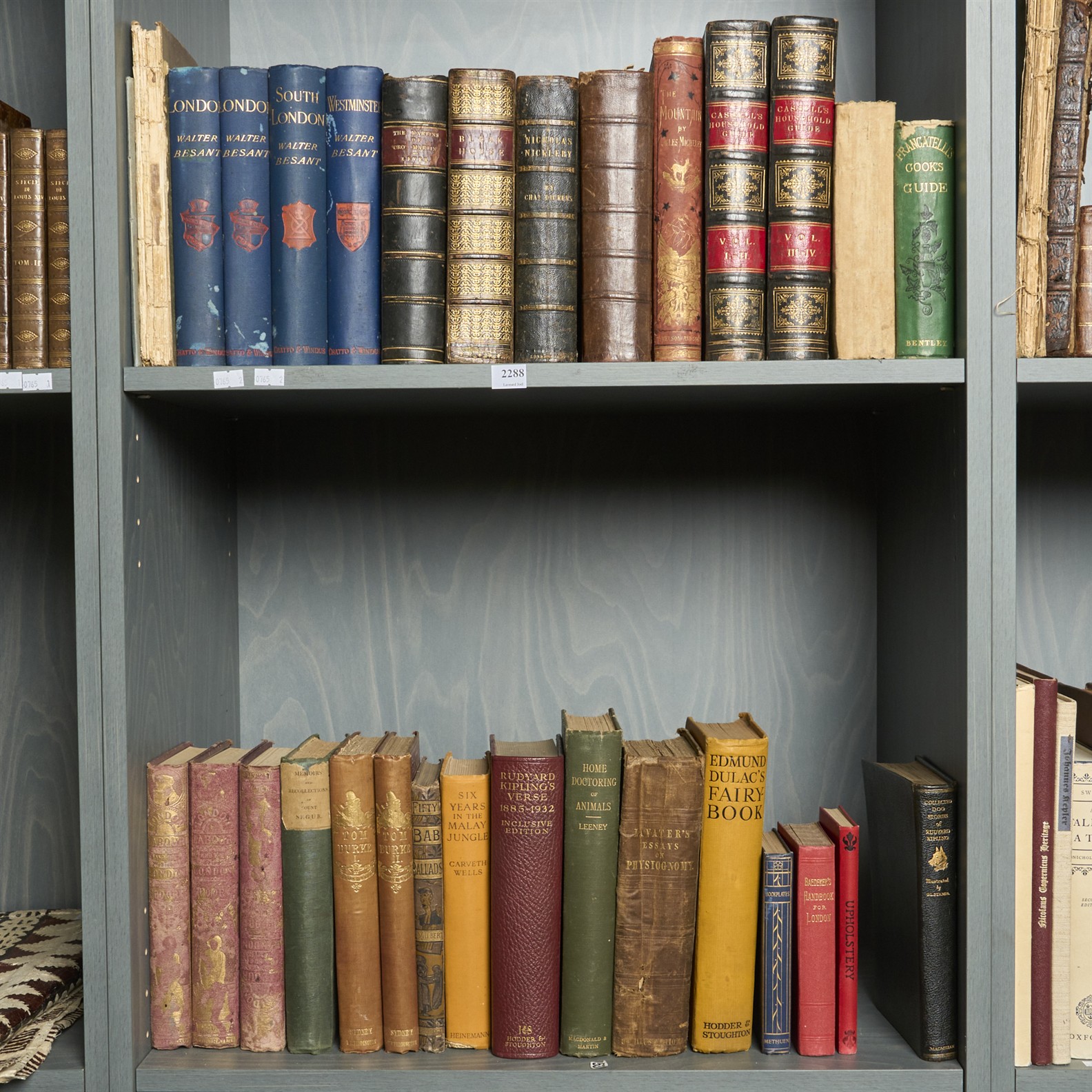 TWO SHELVES OF ANTIQUE AND VINTAGE BOOKS, INCLUDING DICKENS