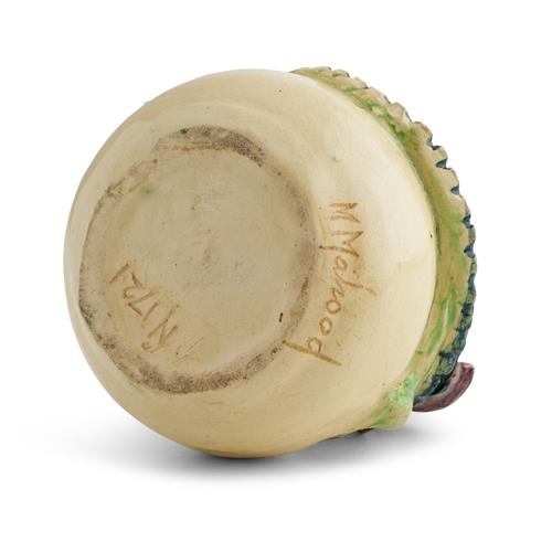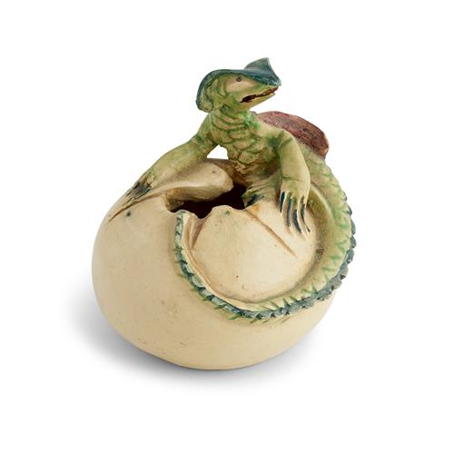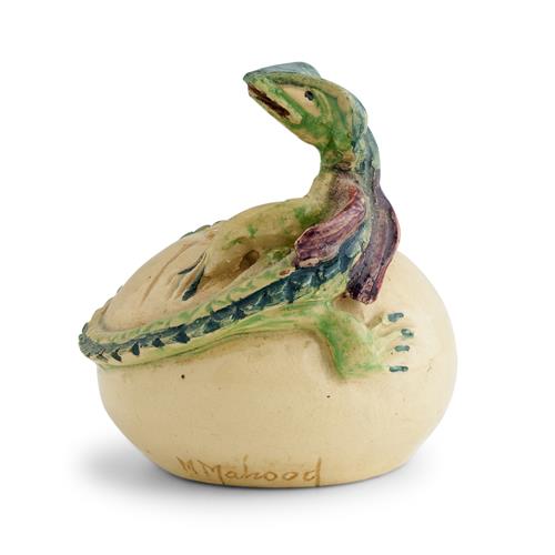 Globular, modelled as a dragon emerging from an egg, incised signature 'MMahood' to lower body, and numbered 'N1721' underside