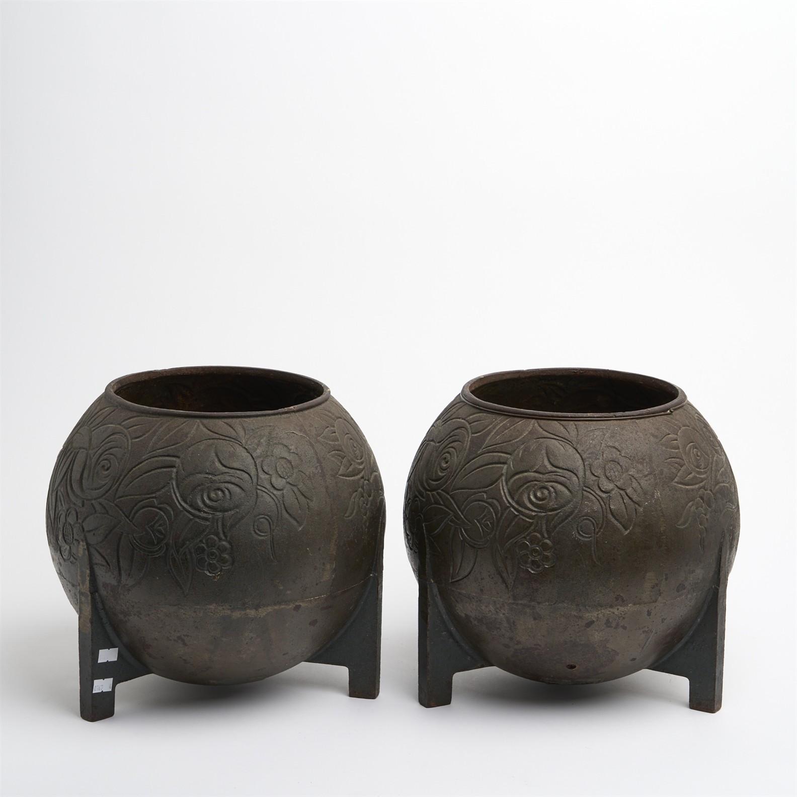 A PAIR OF DECORATIVE CAST METAL VASES H.28CM