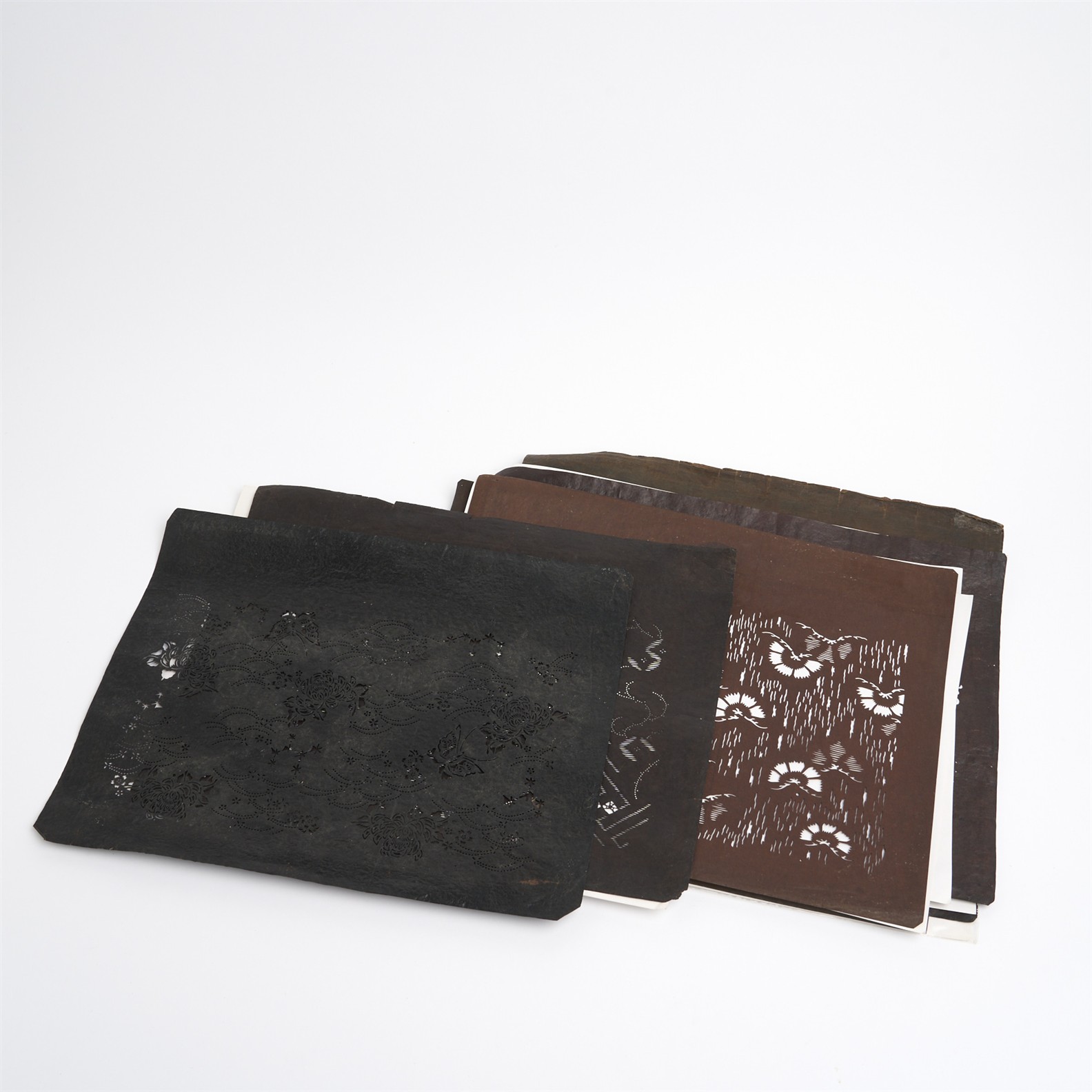 A COLLECTION OF JAPANESE STENCILS FOR KIMONOS 36 X 32CM (LARGEST)