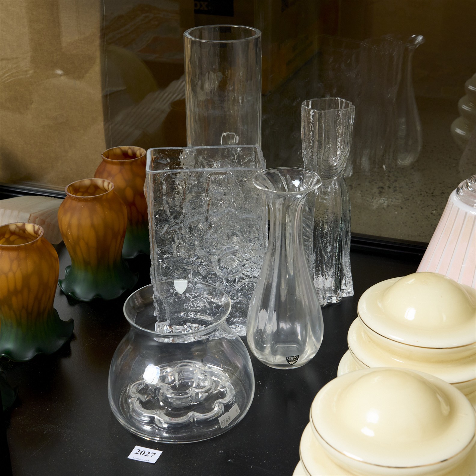 A GROUP OF FIVE MID-CENTURY SWEDISH VASES WITH DESIGNS INCLUDING OLLE ALBERIUS, UNO WESTERBERG, GOSTA SIGVARD, AND CHRISTER SJOGREN (ORREFORS, AND INDSHAMMAR) H.28CM (TALLEST)