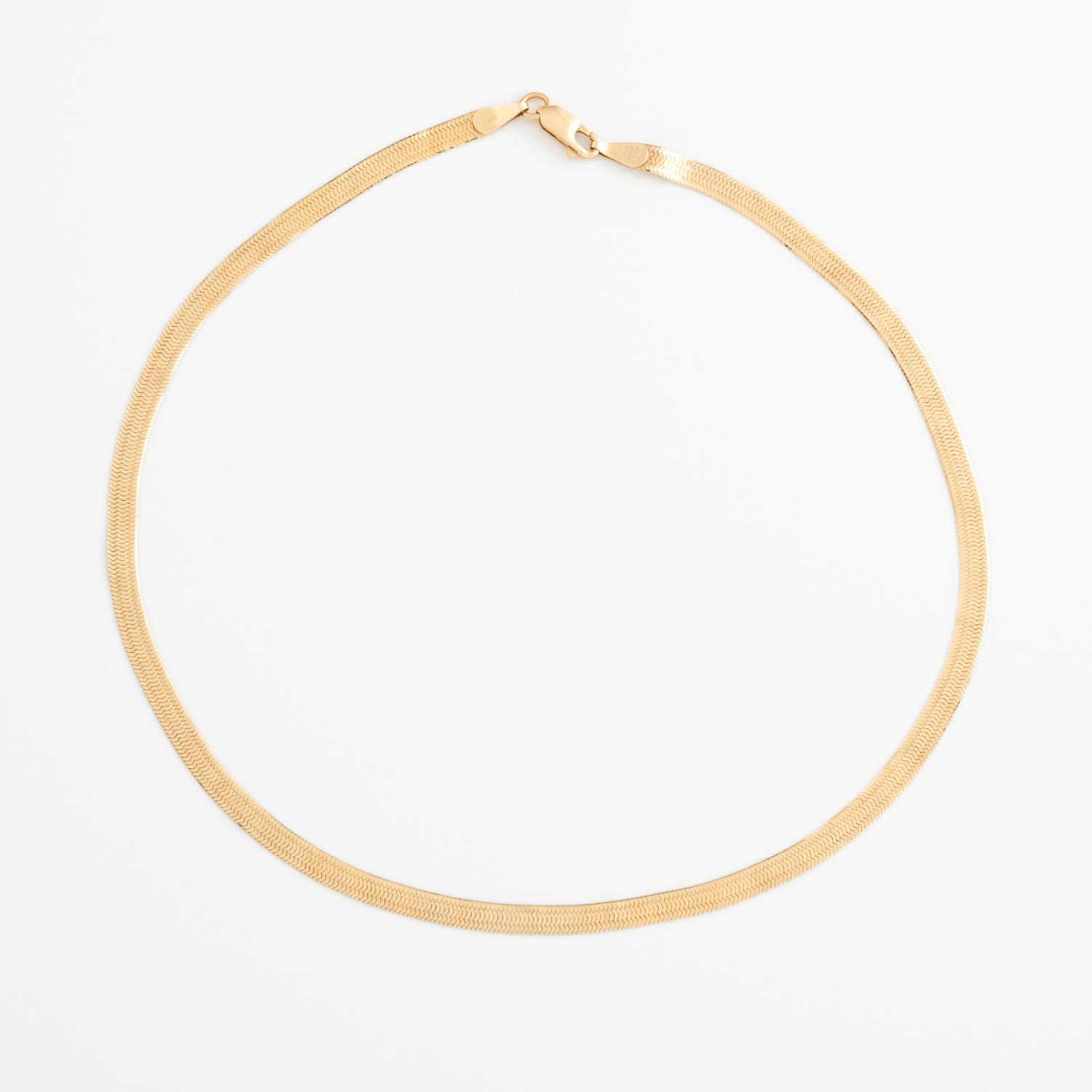 AN ITALIAN FLAT SNAKE CHAIN NECKLACE IN 14CT GOLD TOTAL LENGTH 400MM, 6.12GMS