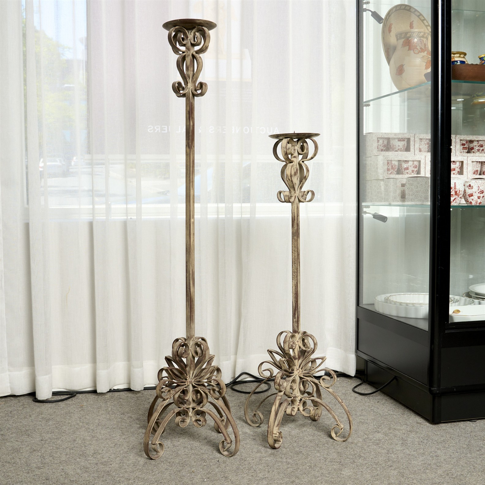 TWO MODERN WROUGHT IRON STANDING PRICKET CANDLE STICKS H.12.5CM