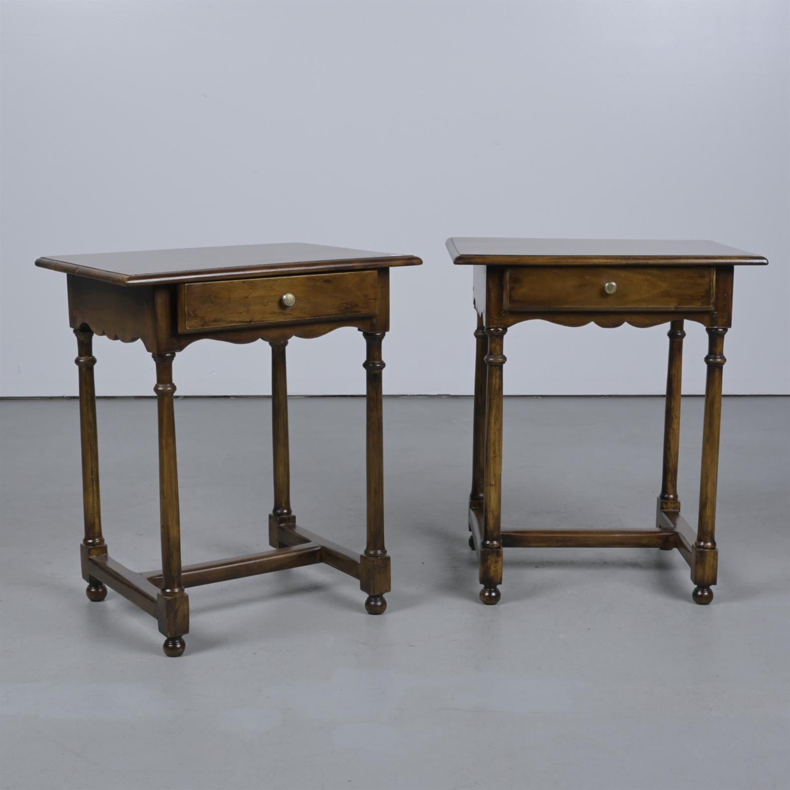 A PAIR OF HARDWOOD SIDE TABLES IN EARLY GEORGIAN MANNER (69CM H X 59CM W X 46CM D)