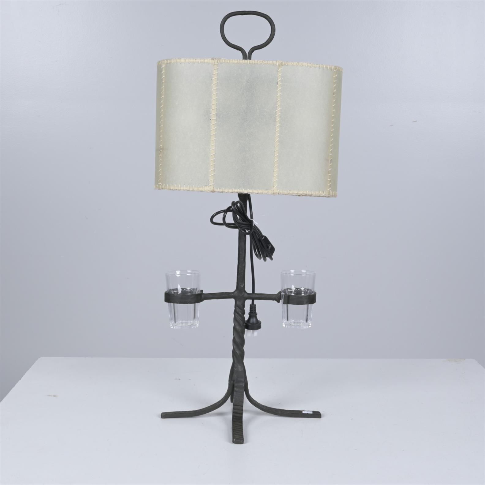 A METAL TABLE LAMP IN THE MANNER OF ANDREW GOURLAY (90CM H X 39CM W)