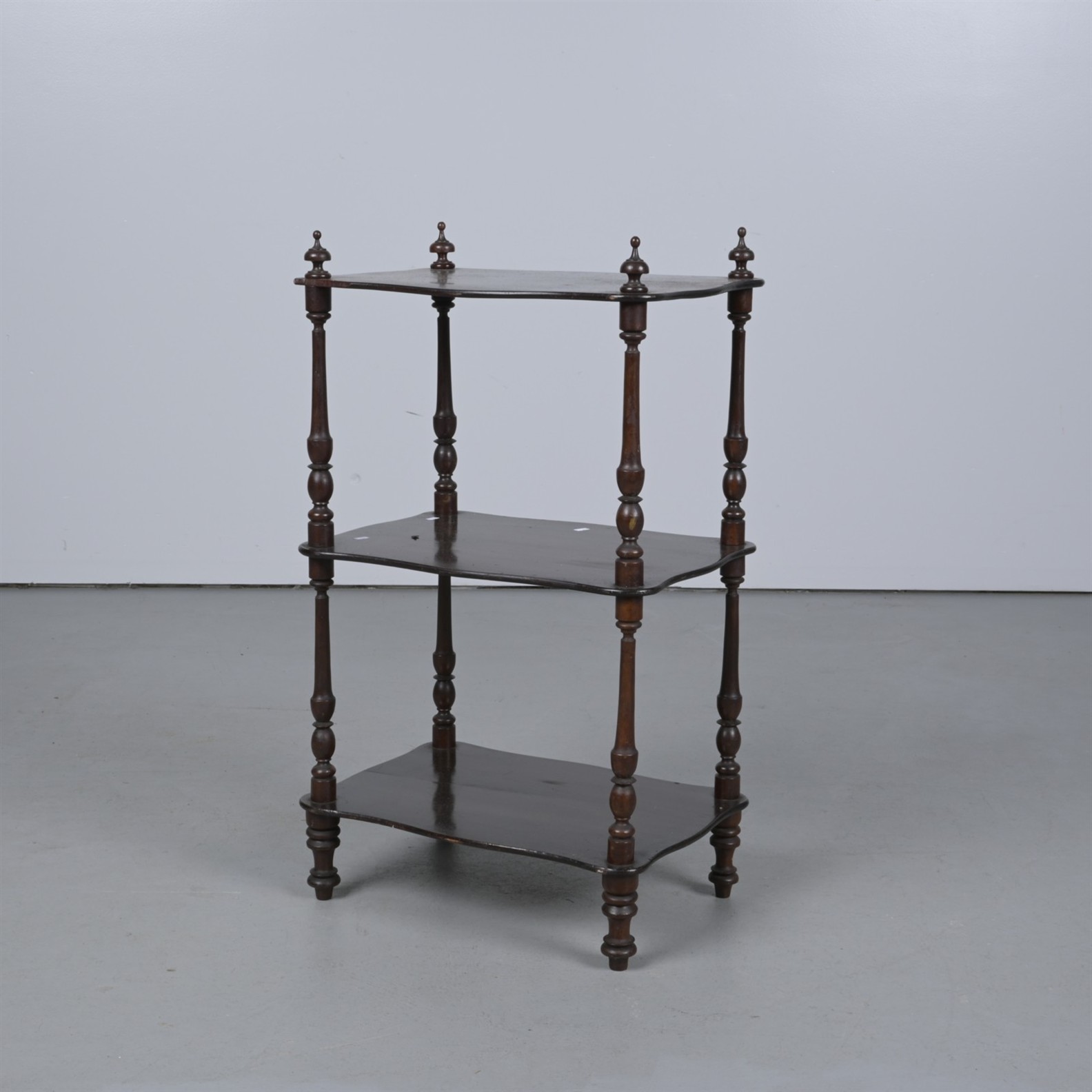 A VICTORIAN HARDWOOD AND STAINED PINE WHATNOT (A/F) (96CM H X 56CM W X 40CM D)