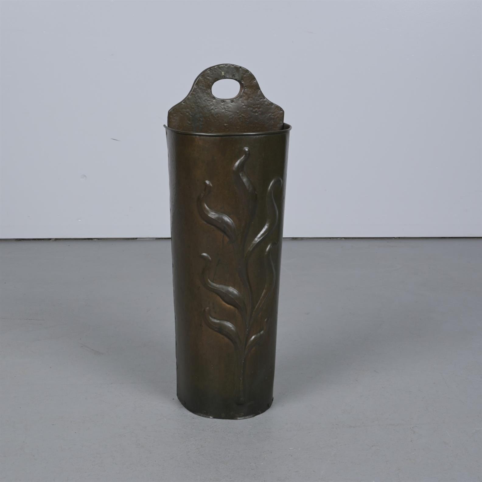 A COPPER AND WOODEN UMBRELLA /WALKING STICK STAND (81CM H X 29CM W)
