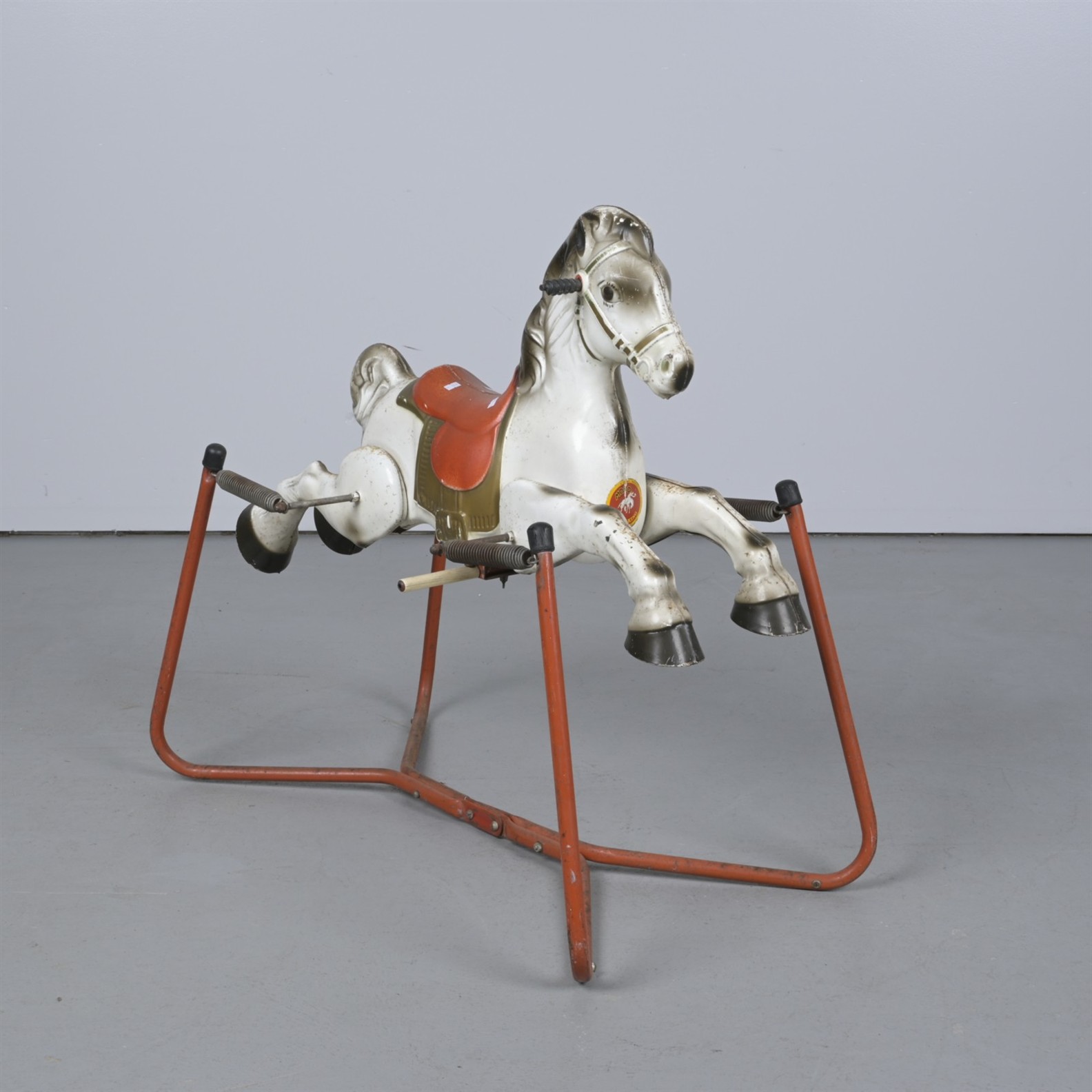 AN ENGLISH PRAIRIE KING METAL ROCKING HORSE (92CM H X 95CM W X 52CM D)