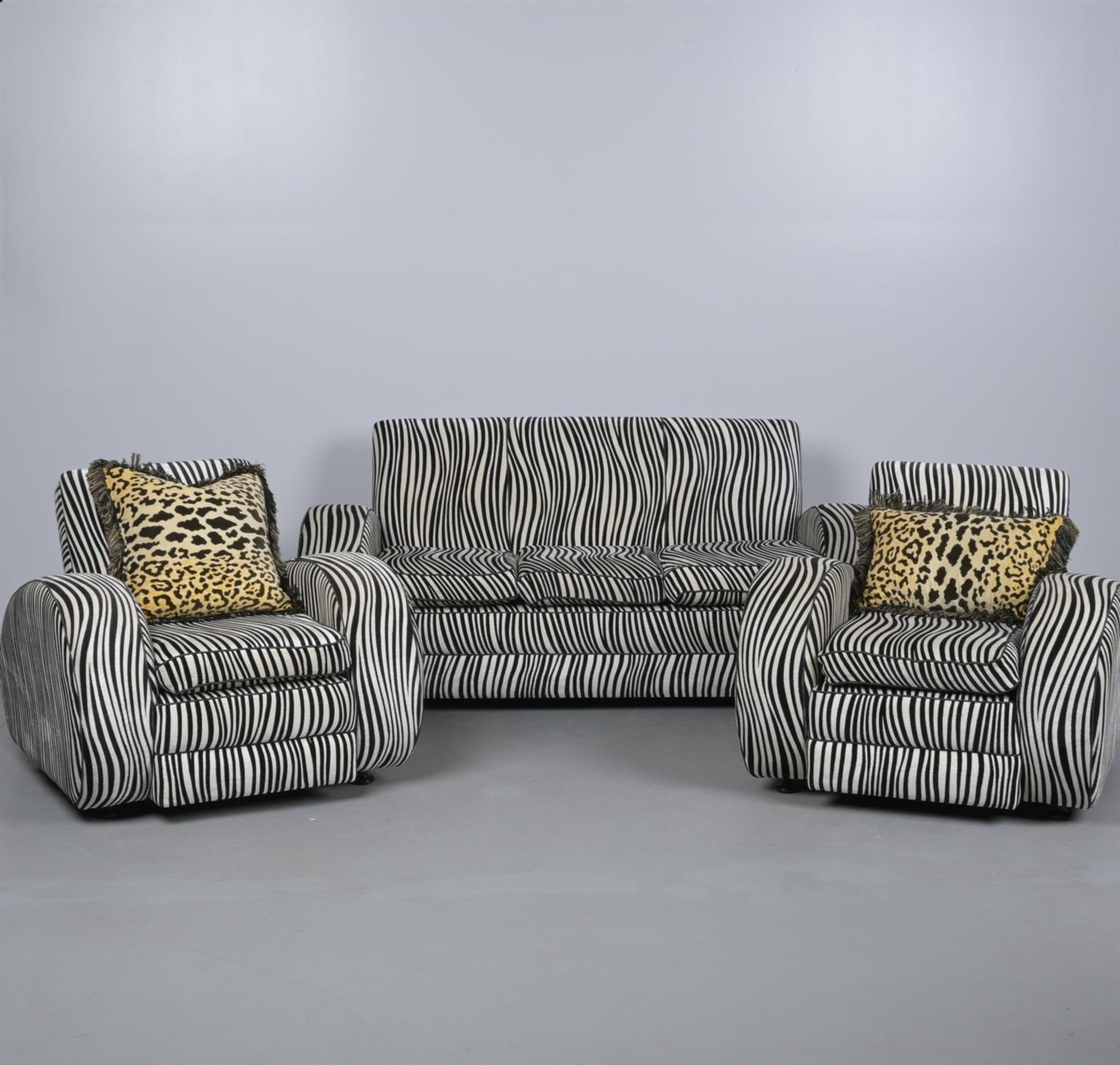 AN UPHOLSTERED THREE-SEAT SOFA WITH MATCHED UPHOLSTERED ARMCHAIRS (SOFA 86CM H X 187CM W X 100CM D)