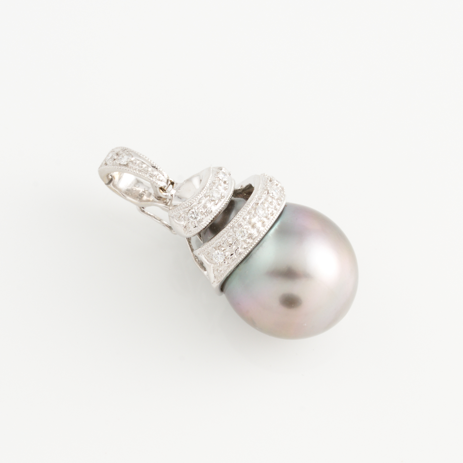 A TAHITIAN PEARL AND DIAMOND ENHANCER PENDANT IN 18CT WHITE GOLD, 28MM