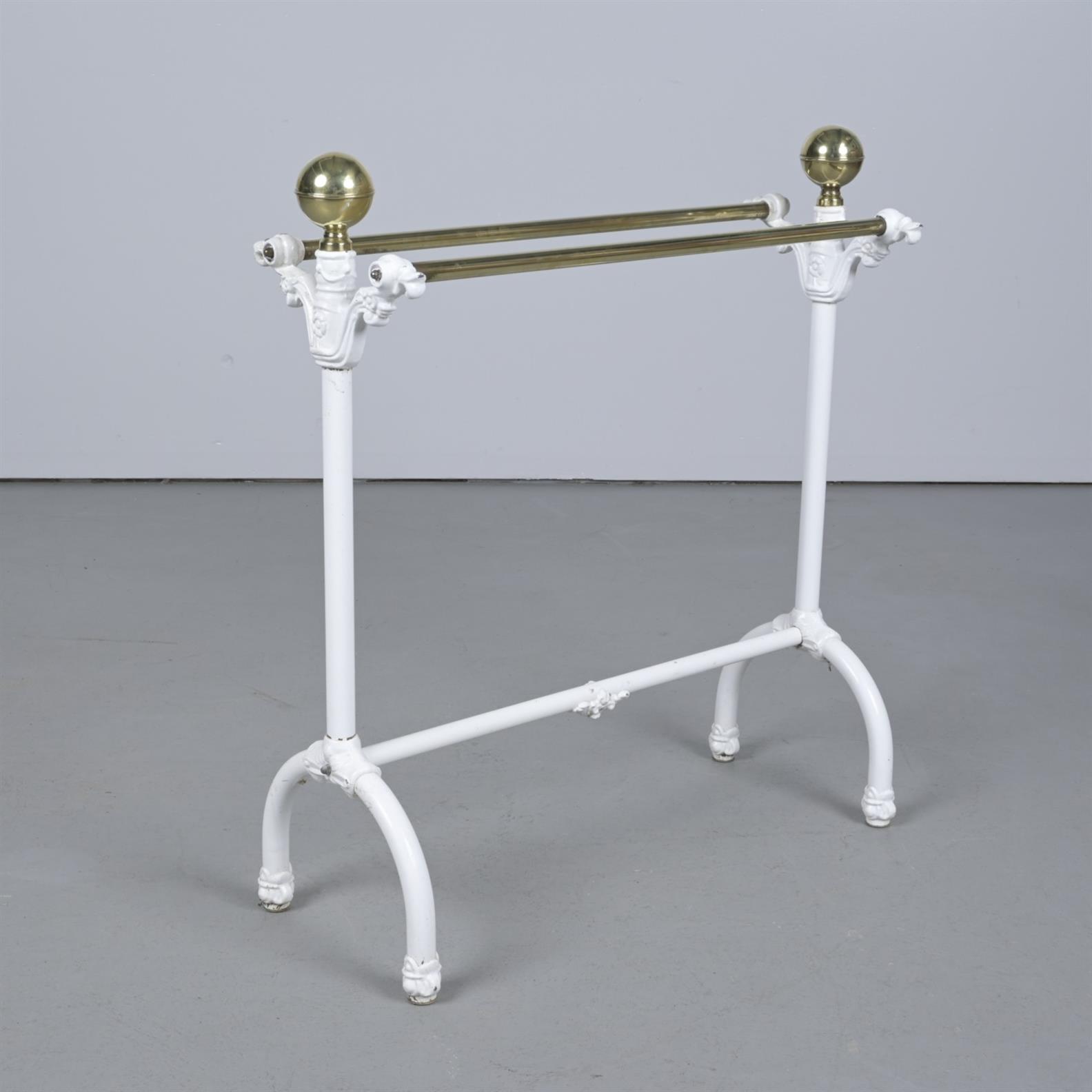 A BRASS AND CAST METAL TOWEL RAIL IN ANTIQUE MANNER (93CM H X 82CM W X 30CM D)