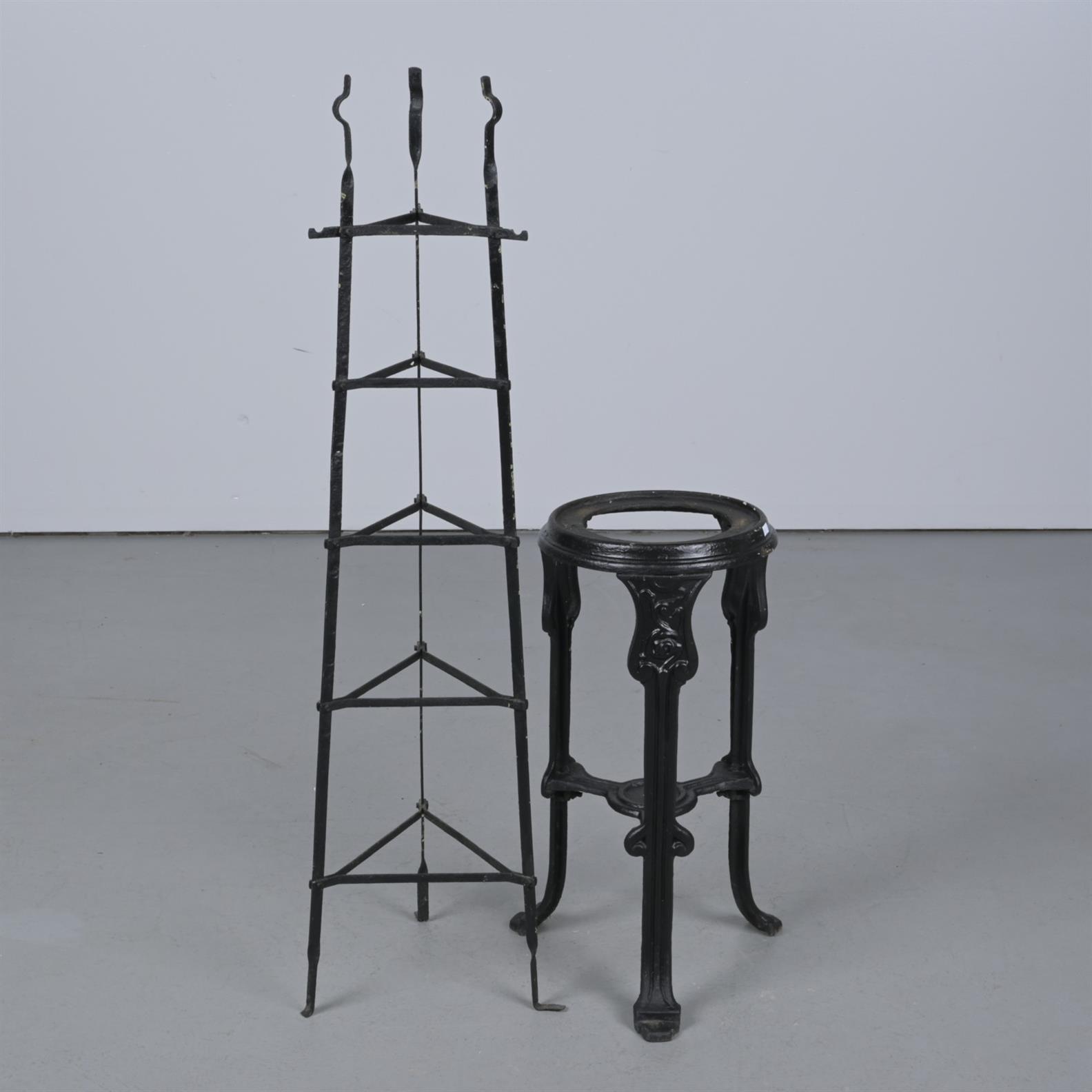 TWO CAST IRON PLANT STANDS (117CM H, TALLEST)