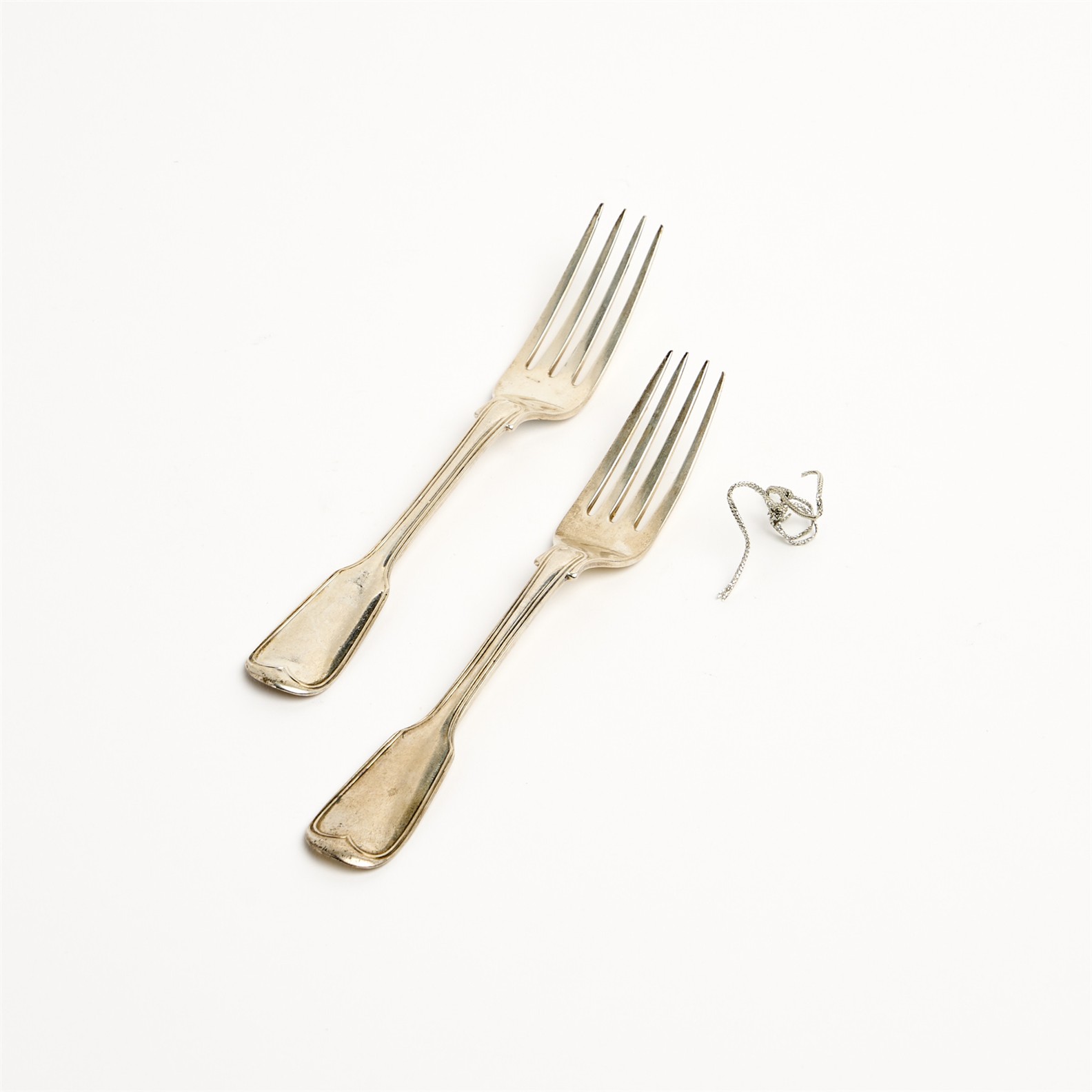 TWO STERLING SILVER FIDDLE AND THREAD PATTERN FORKS 164G L.20CM