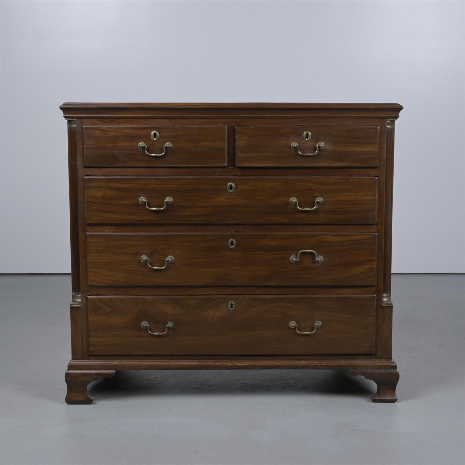 A GEORGE III MAHOGANY CHEST OF DRAWERS (110CM H X 121CM W X 54CM D)
