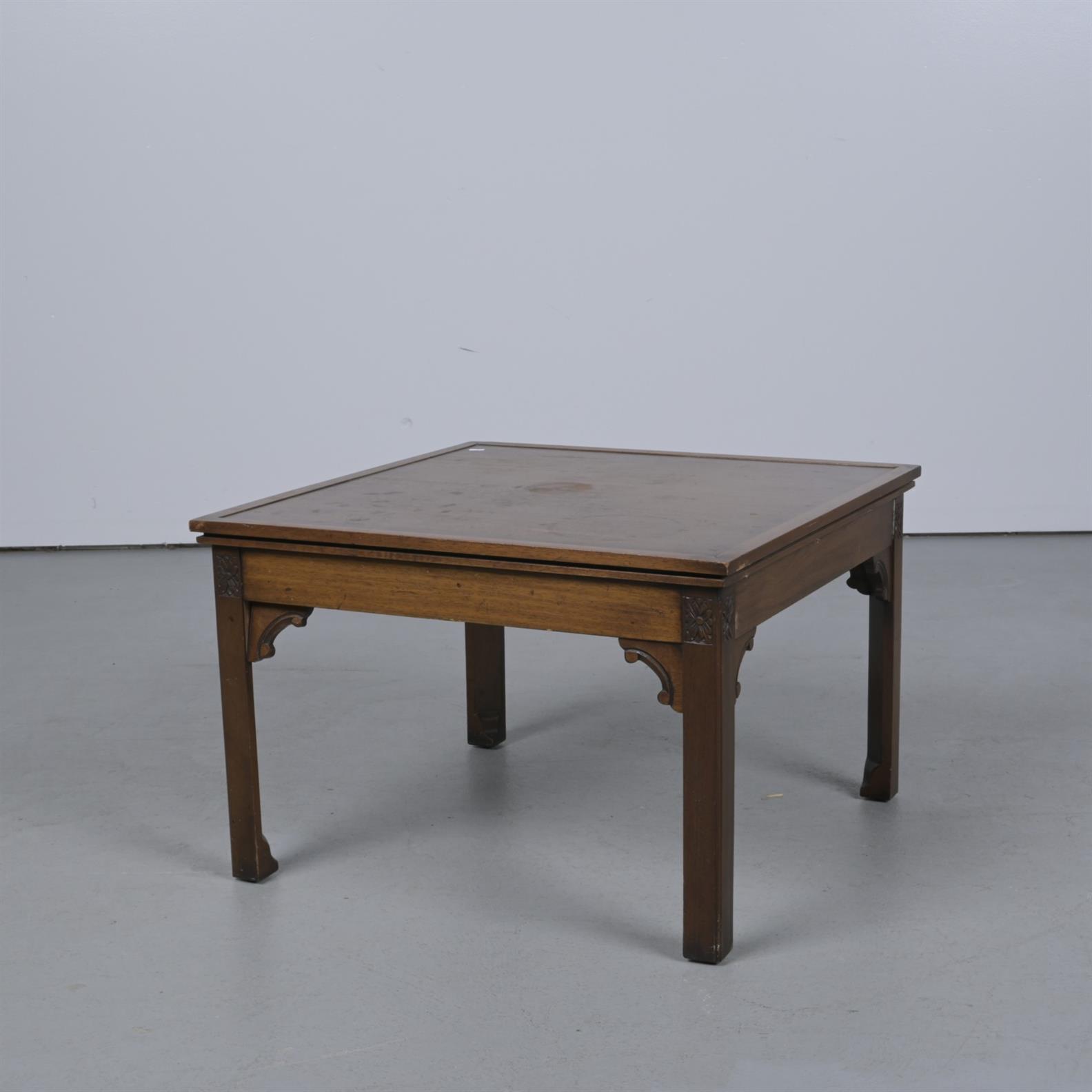 A LOW HARDWOOD COFFEE TABLE (46CM H X 69CM W X 69CM D)