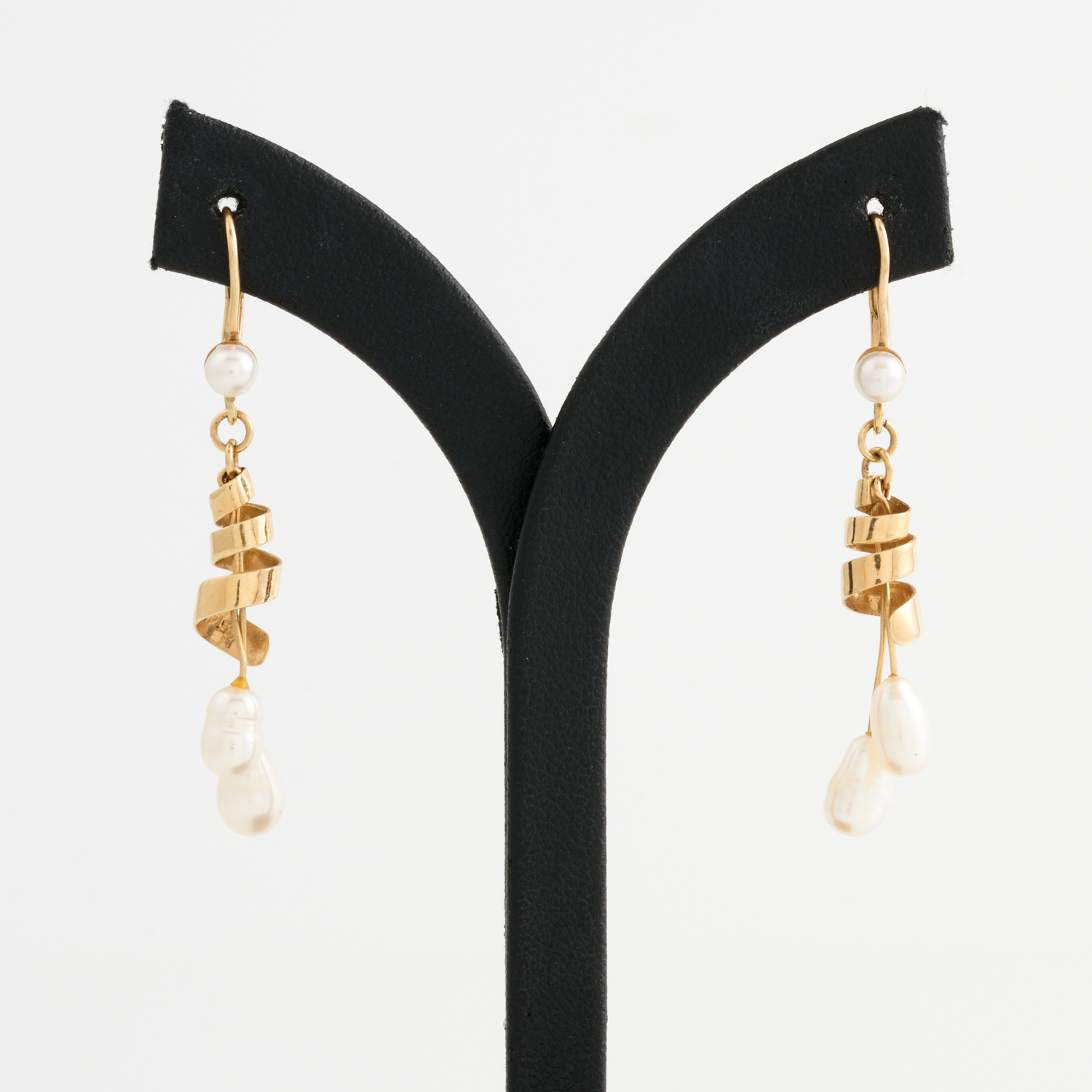 A PAIR OF PEARL SPIRAL EARRINGS IN 14CT GOLD TO HOOK AND CLIP FITTINGS, 44MM IN LENGTH, TOTAL WEIGHT 3.28GMS