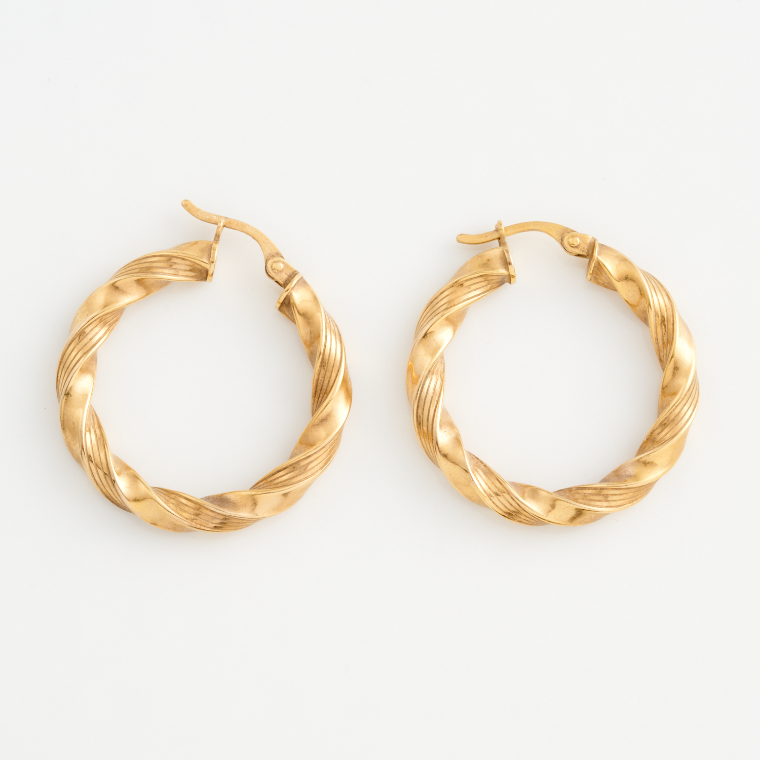 A PAIR OF TWISTED HOOPS IN 9CT GOLD TO POST AND HINGE FITTINGS, DIAMETER 27MM, TOTAL WEIGHT 2.97GMS