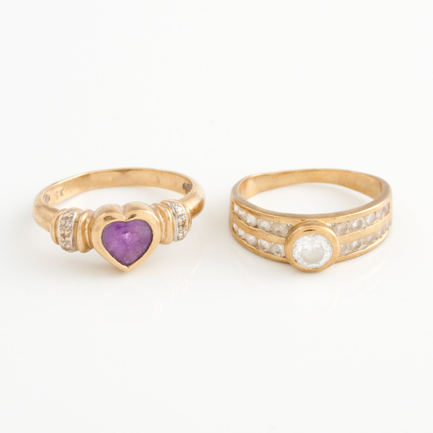 A PAIR OF GEM AND CUBIC ZIRCONIA SET RINGS IN 9CT GOLD, SIZE M, TOTAL WEIGHT 5.5GMS